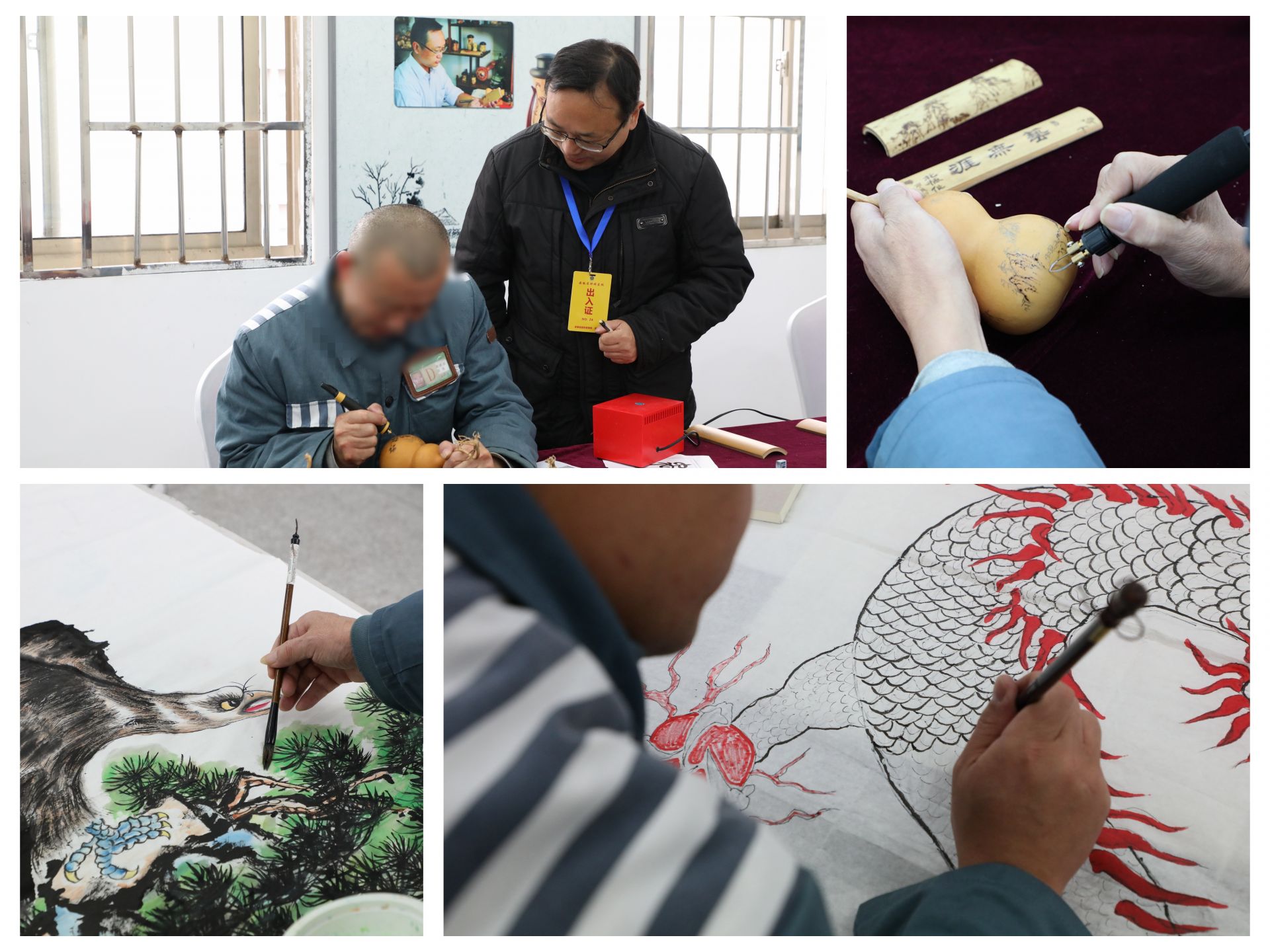 记者看到,综合楼主会场“禹风”“禹光”LOGO显眼夺目,字画长廊书香弥漫,非遗展厅烙画忙,处处散发着“禹文化”的气息。活动中,安徽监狱“皖风”品牌蚌埠监狱挂牌点揭牌,“中国好人”李东向监狱捐赠了一批图书。随后,大家共同观看了《厚植“禹光 ”品牌 赋能改造助新生》宣传片,现场观摩了服刑人员的书法、绘画作品和非遗艺术——“烙画”现场教学,感受了传统文化的魅力,见证了监狱在服刑人员教育改造工作中的创新举措及成效。