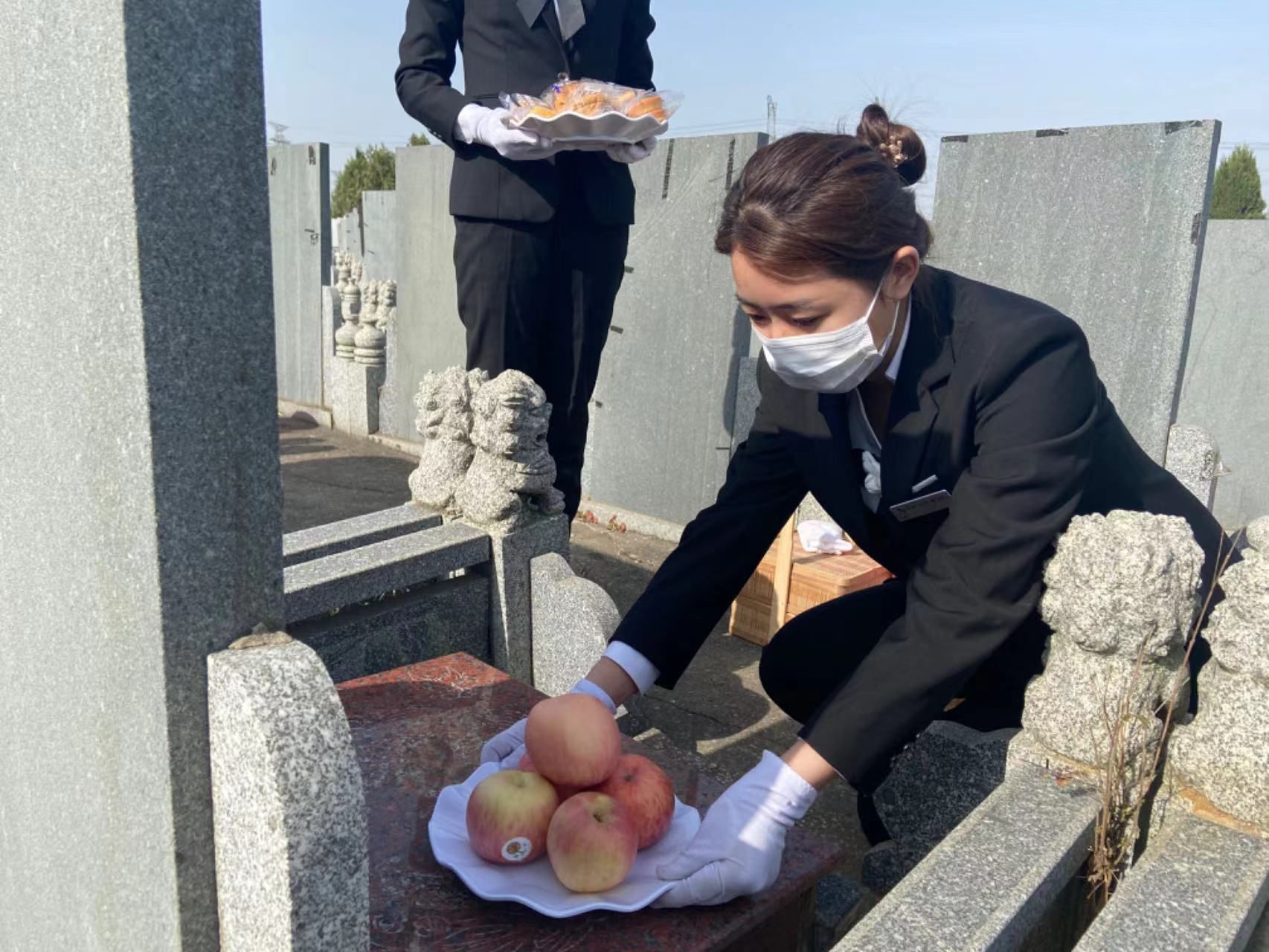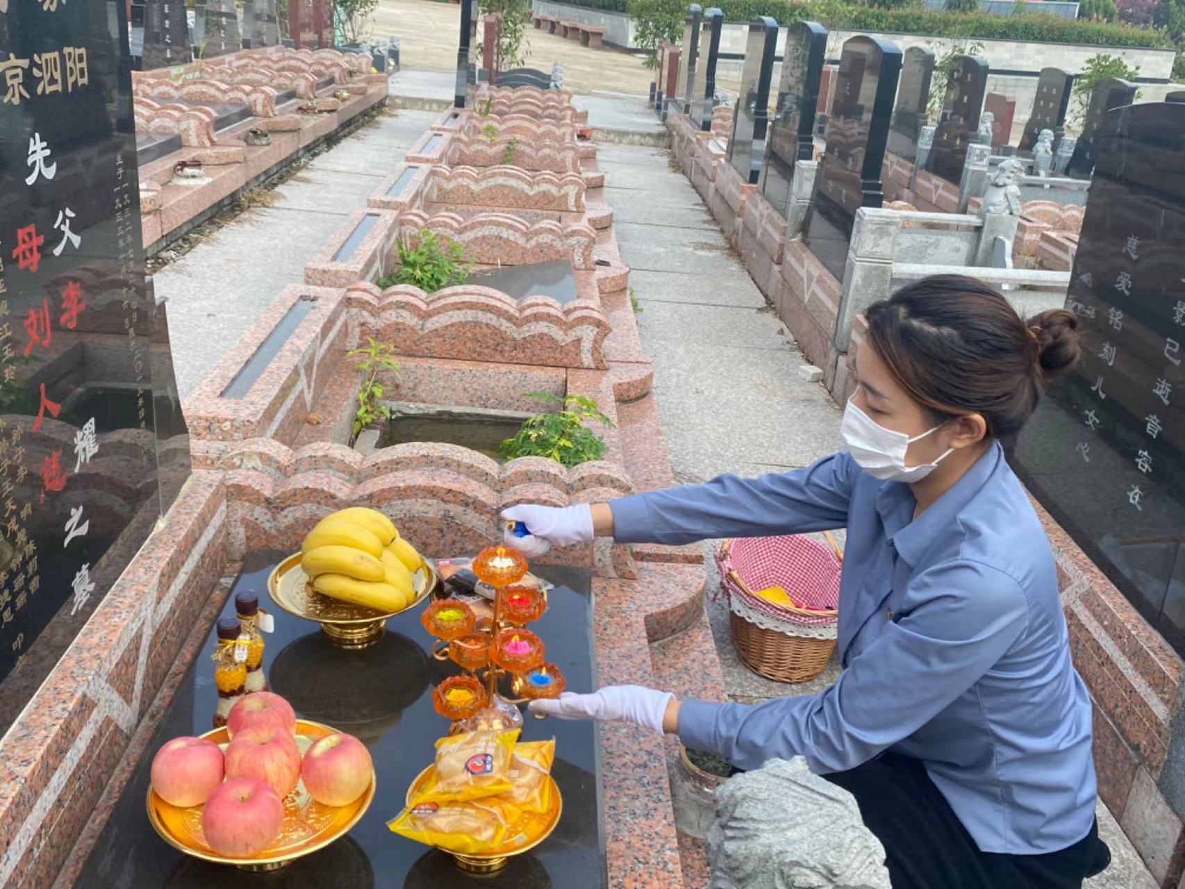 “百事”服务队主要从事落葬礼仪、代客祭扫、志愿服务以及文明祭祀宣传、倡导绿色节地生态葬等工作,创新推出“鲜花换火纸”“时空邮箱”“网上实景祭奠”等文明祭奠新方式。