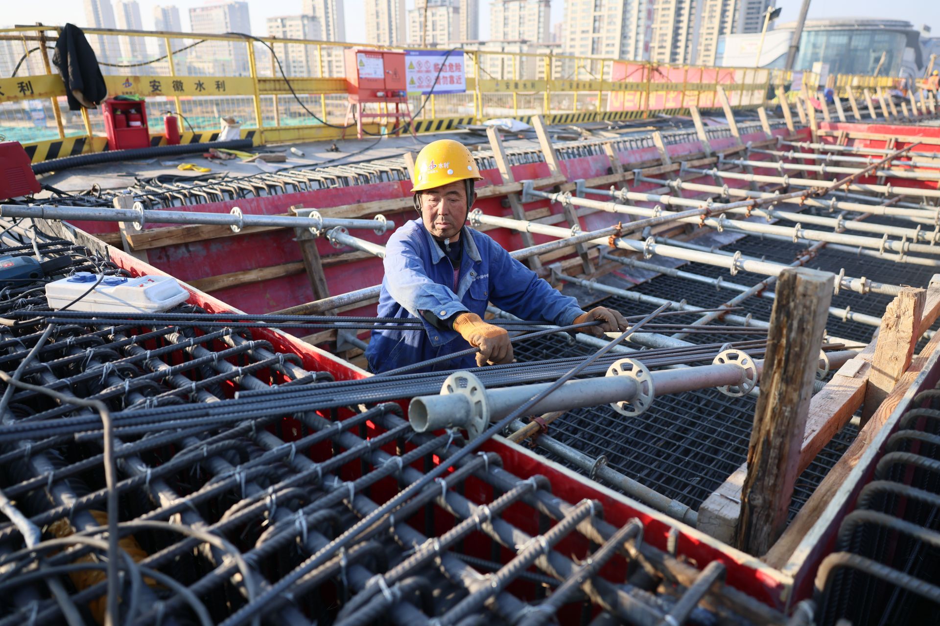 蚌埠发布客户端讯(融媒体记者 刘晨)1月1日,2025年第一天,记者在延安路淮河大桥及接线工程现场看到,各岗位管理人员和建筑工人坚守岗位,抢时间抓进度。