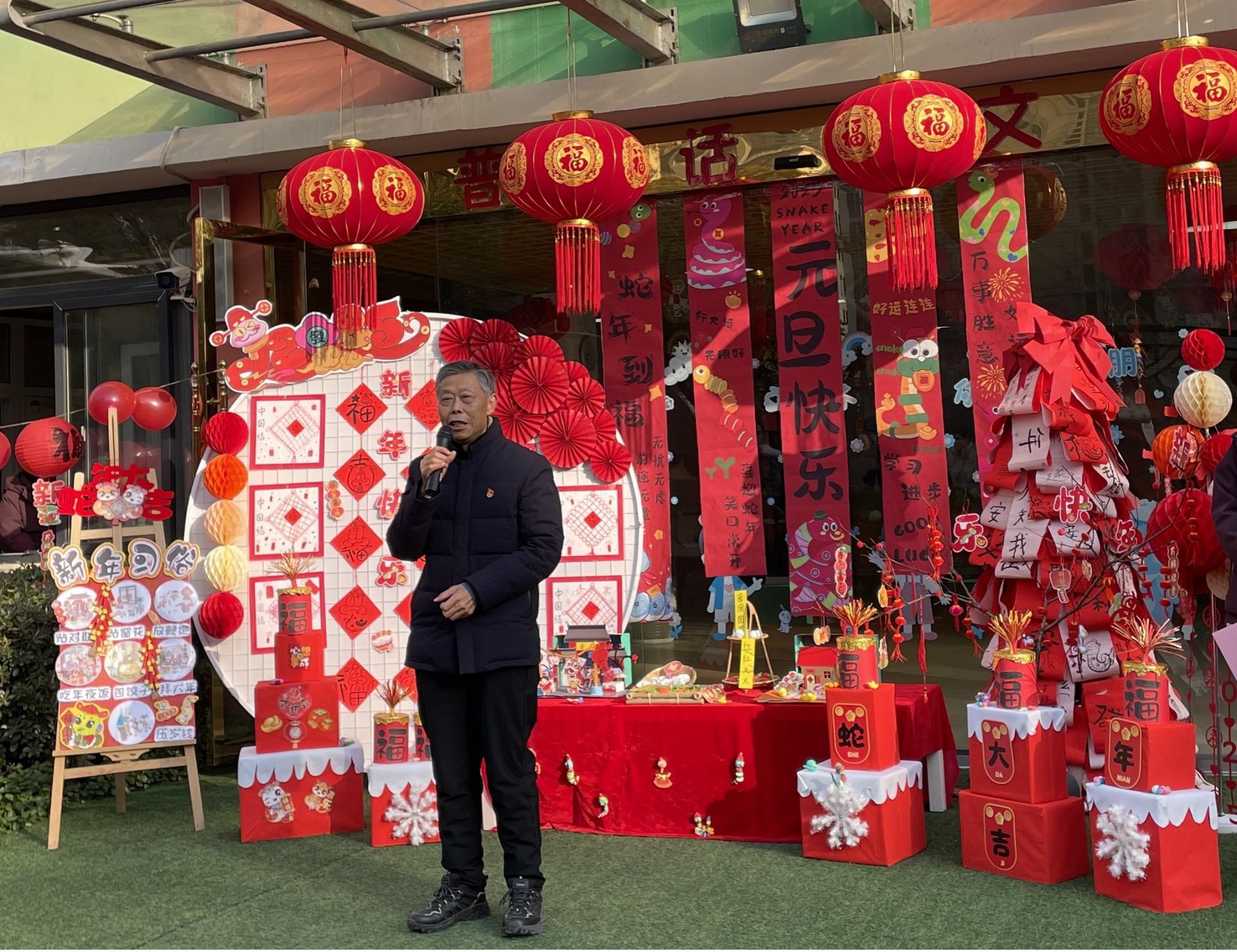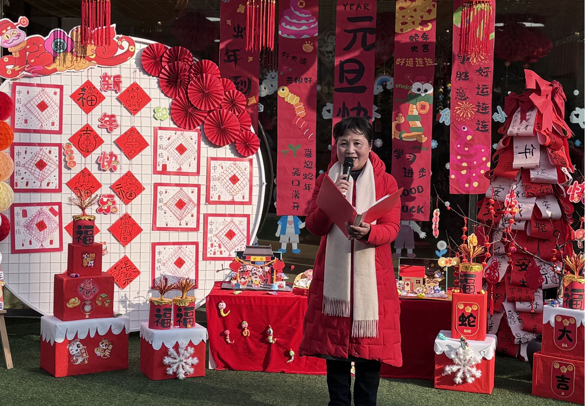 深情朗诵《新年,你好!》,朗诵者以其优美的嗓音、真挚的情感,将对新年的期盼与祝福传递给每一位听众,引得台下掌声阵阵。书法团队大展身手,挥毫泼墨书写春联与 “福” 字。笔锋游走间,一副副寓意吉祥的春联、一张张饱含墨香的 “福” 字新鲜出炉,家长和孩子们纷纷围拢,精心挑选心仪之作,现场一片红红火火的喜庆景象。