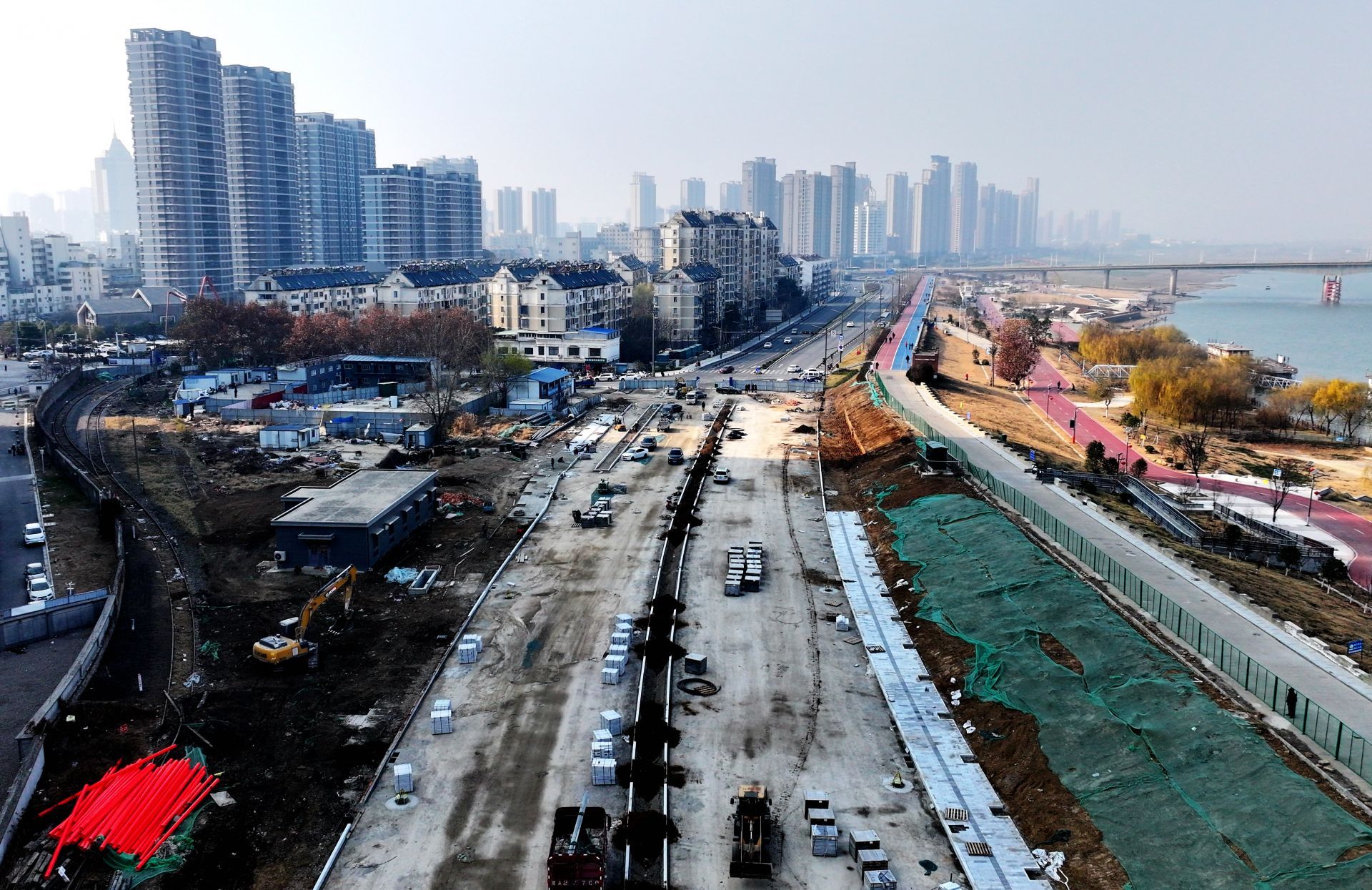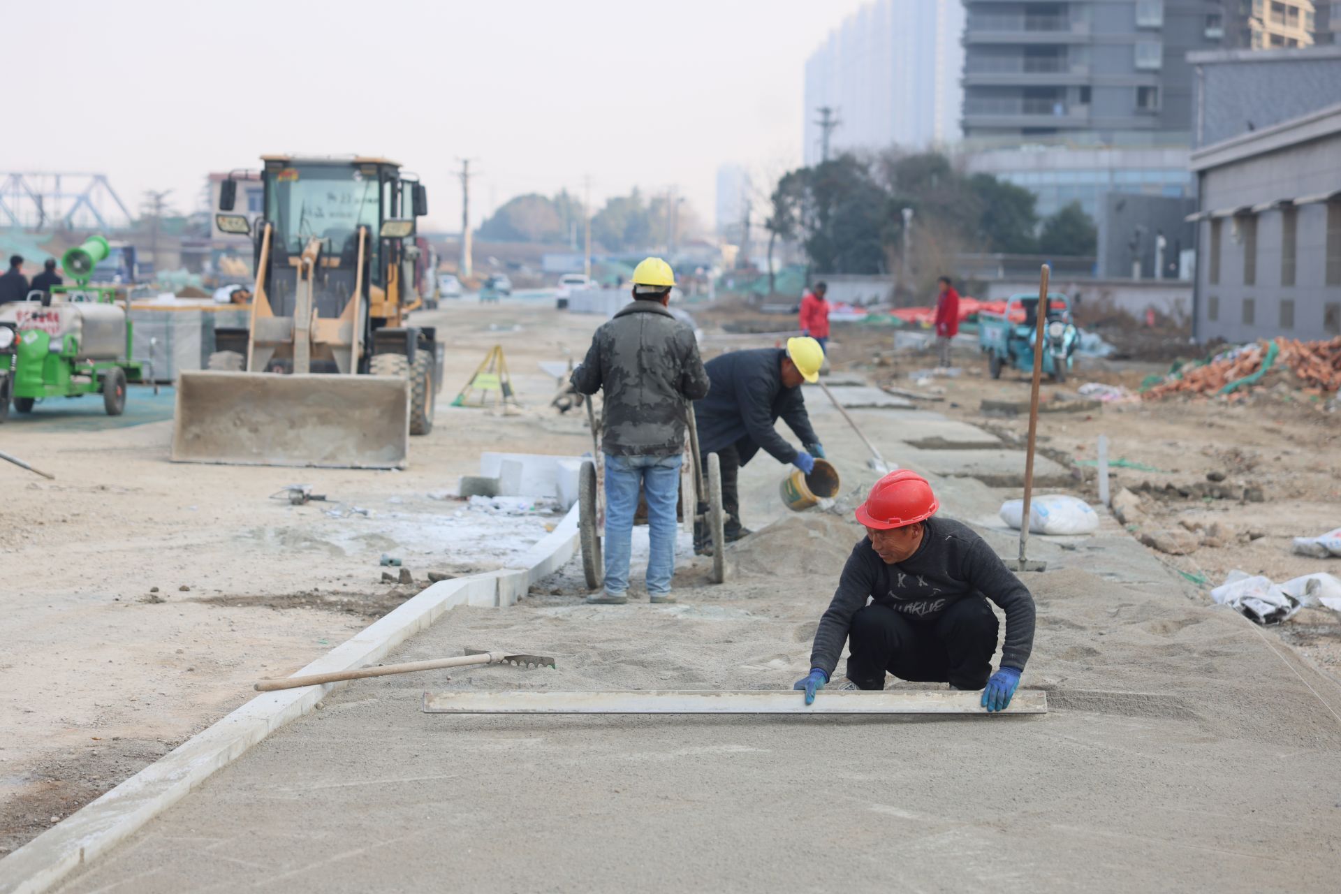 1月3日,蚌报融媒体记者来到滨河南路三期工程现场,沿着建成的纬四路至升平街向东探访,在升平街至中山街段工程现场看到建筑工人或在铺设地砖,或在架设管线。随后,记者又来到建设中的新城路至交通路段,看到数台工程机械车辆正在往返作业,工人在加紧对沿线配套设施进行安装,一派冲刺节点的繁忙施工景象。