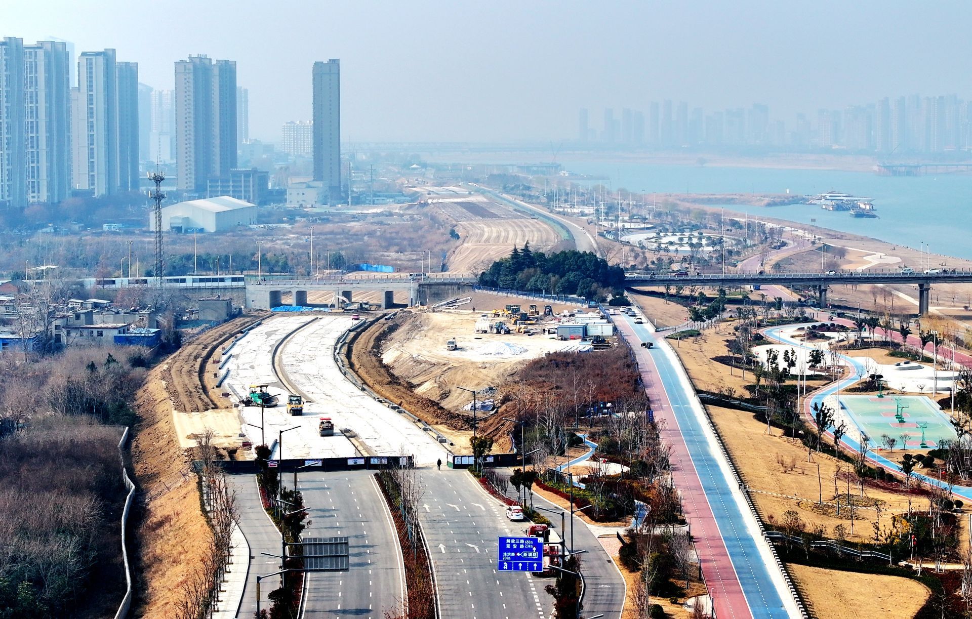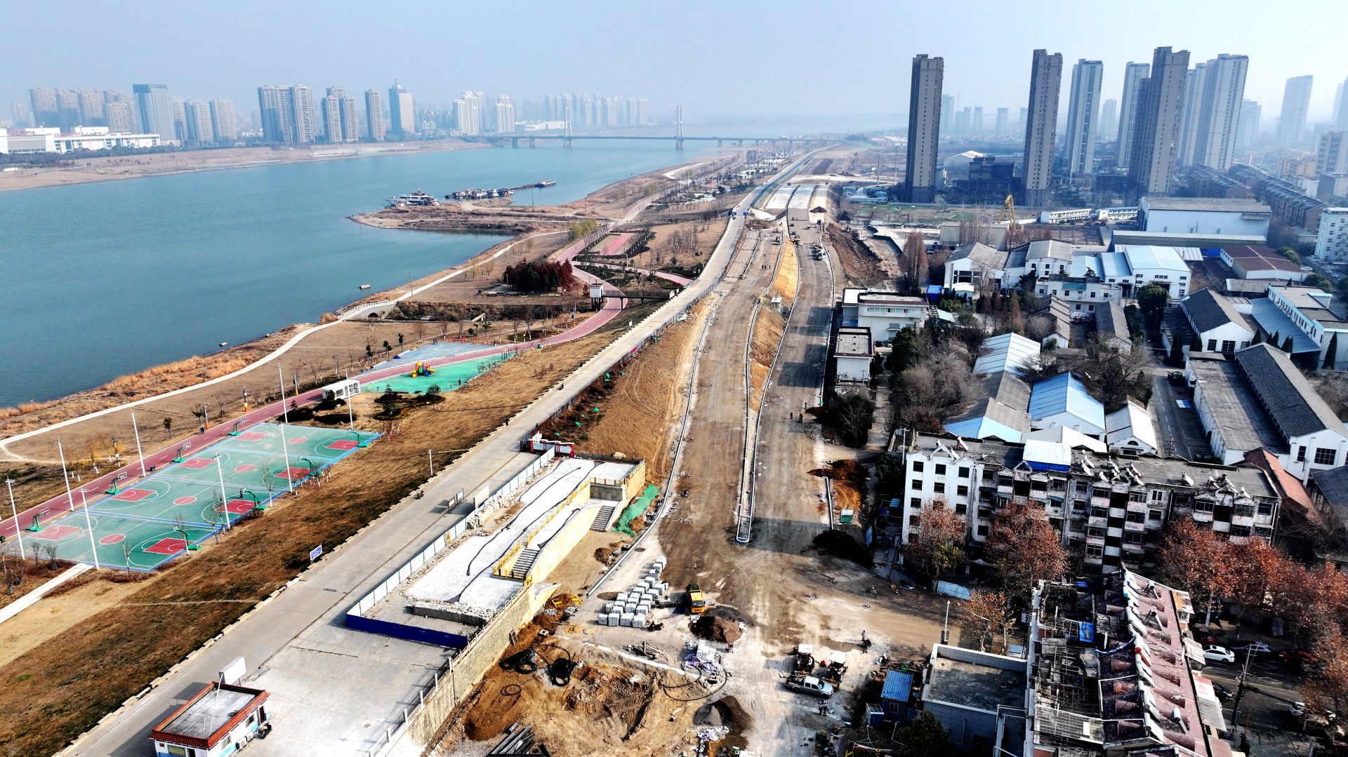 滨河南路是靓淮河工程重要组成部分,道路设计等级为城市次干道,设计时速50km/h,规划红线宽度45m,双向六车道,道路两侧配建非机动车道、人行道,包含地面地下基础设施、沿线绿化环境提升改造。正在实施的滨河南路分为三期工程实施,一期工程(胜利西路-纬四路)、二期工程(新城路-龙子河口)分别于2022年10月、2023年2月建成通车。目前在建的是滨河南路三期工程(纬四路-新城路),其中纬四路至升平街已于2024年5月建成通车,待春节前升平街至中山街、新城路至交通路段按计划通车后,滨河南路全段将完成约5.6 公里。