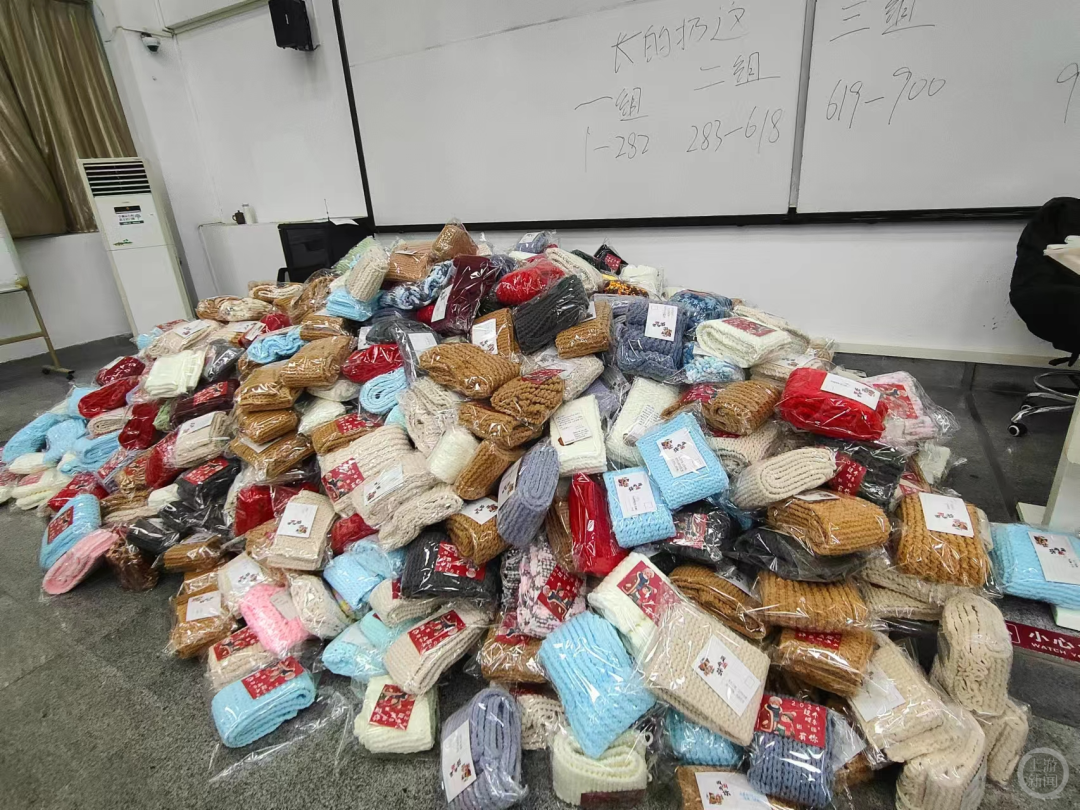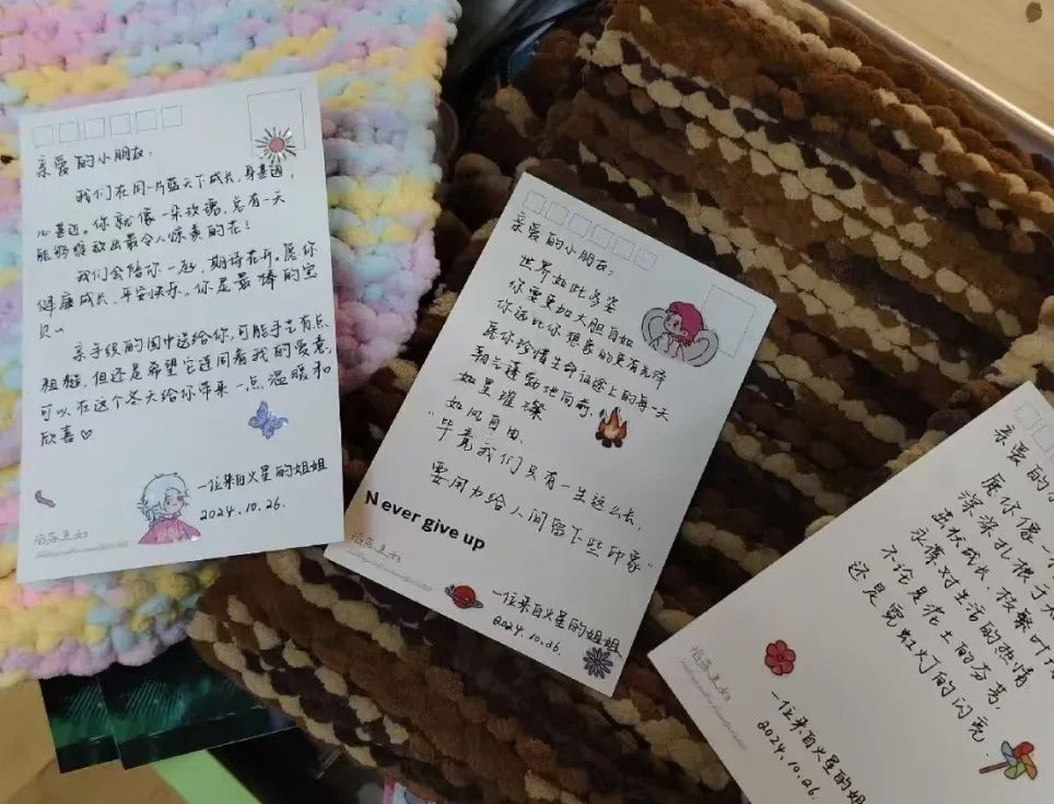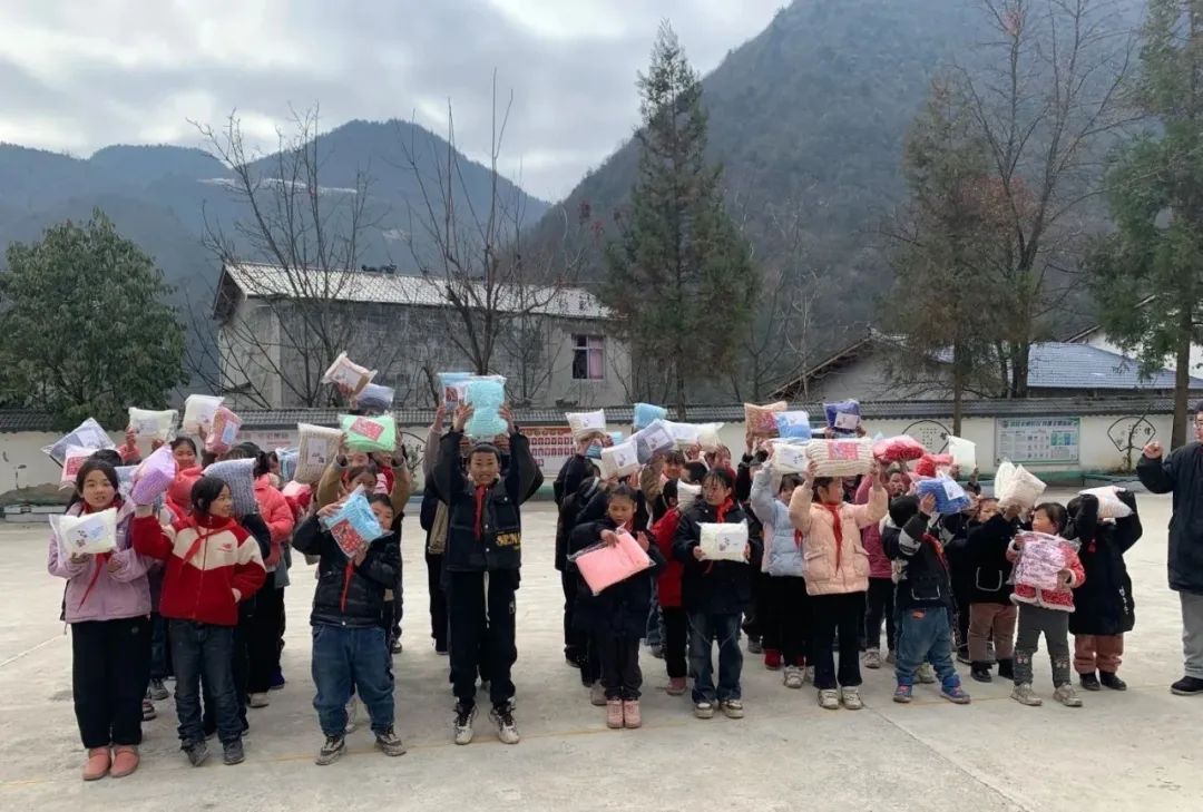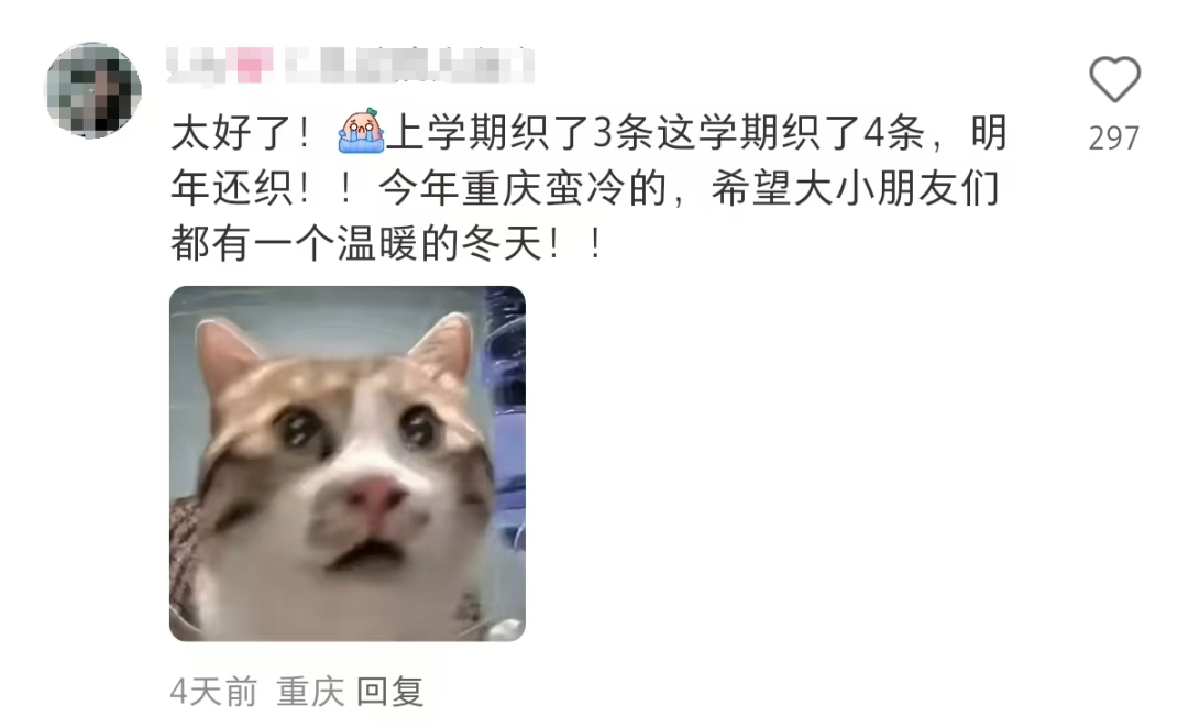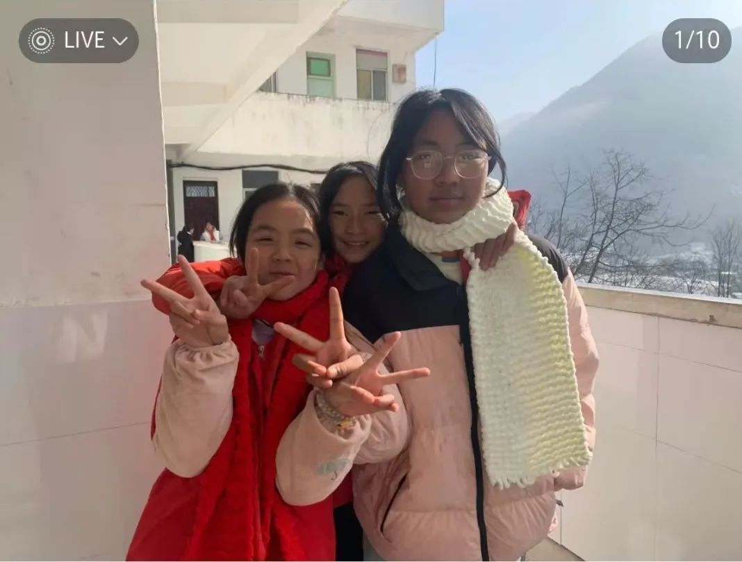 得知山区的小朋友和老人们戴上亲手织的围巾后