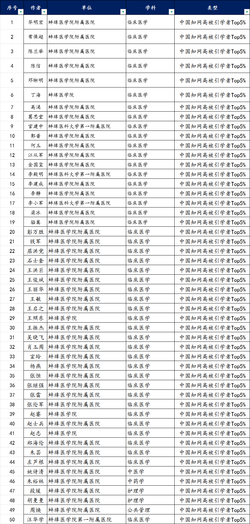 蚌埠发布客户端讯 (融媒体记者 陈瑶 通讯员 王红玲)近日,中国知网公布了2024年度知网高被引学者名单,蚌医大一附院56名医护人员荣登“2024中国知网高被引学者榜单”。其中,钱志刚、陈卫东、吴敏、徐磊、李秀川、谢宗玉6人入选“2024中国知网高被引学者TOP 1%”名单;毕明宏等50人入选“2024中国知网高被引学者TOP 5%”名单。