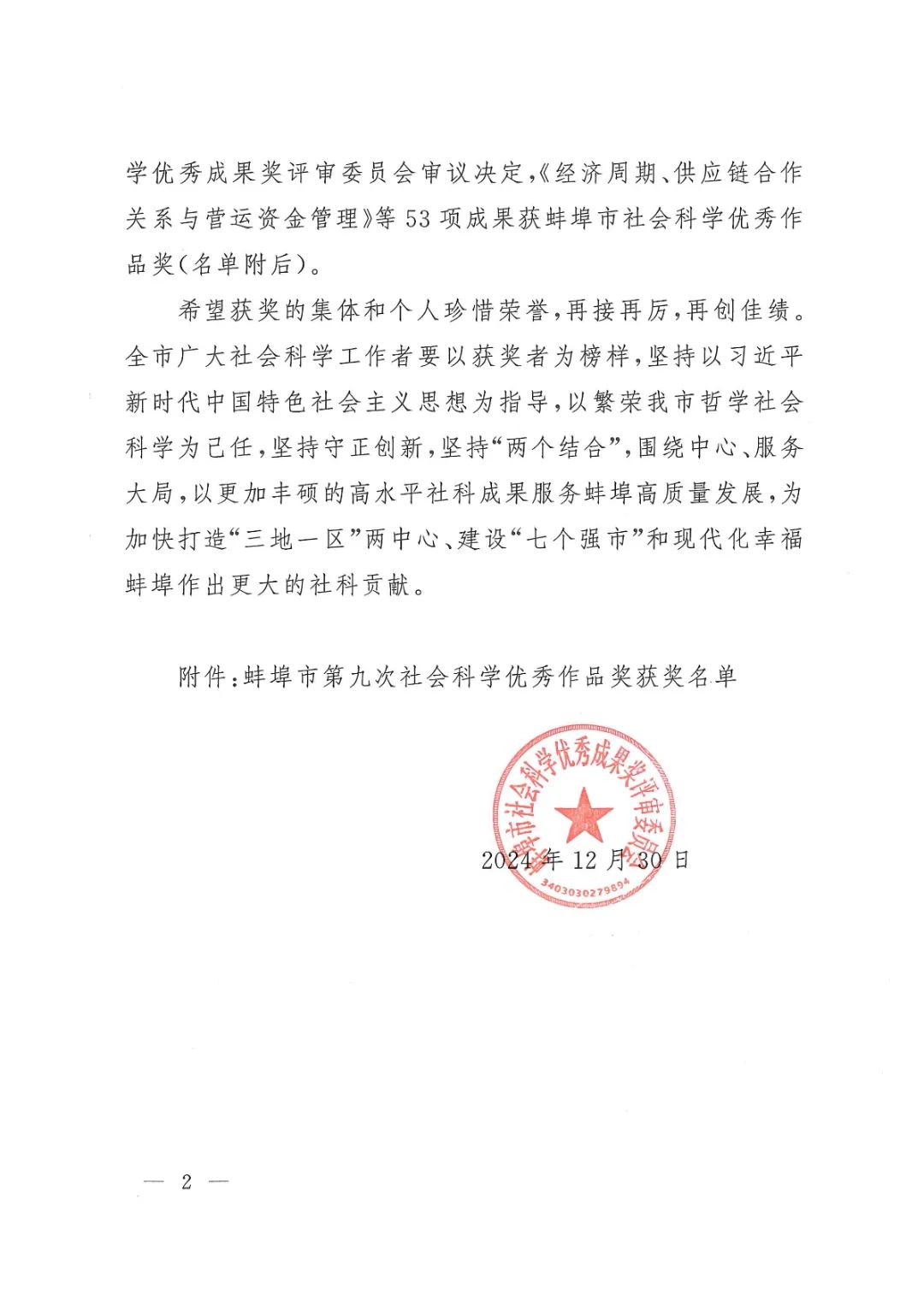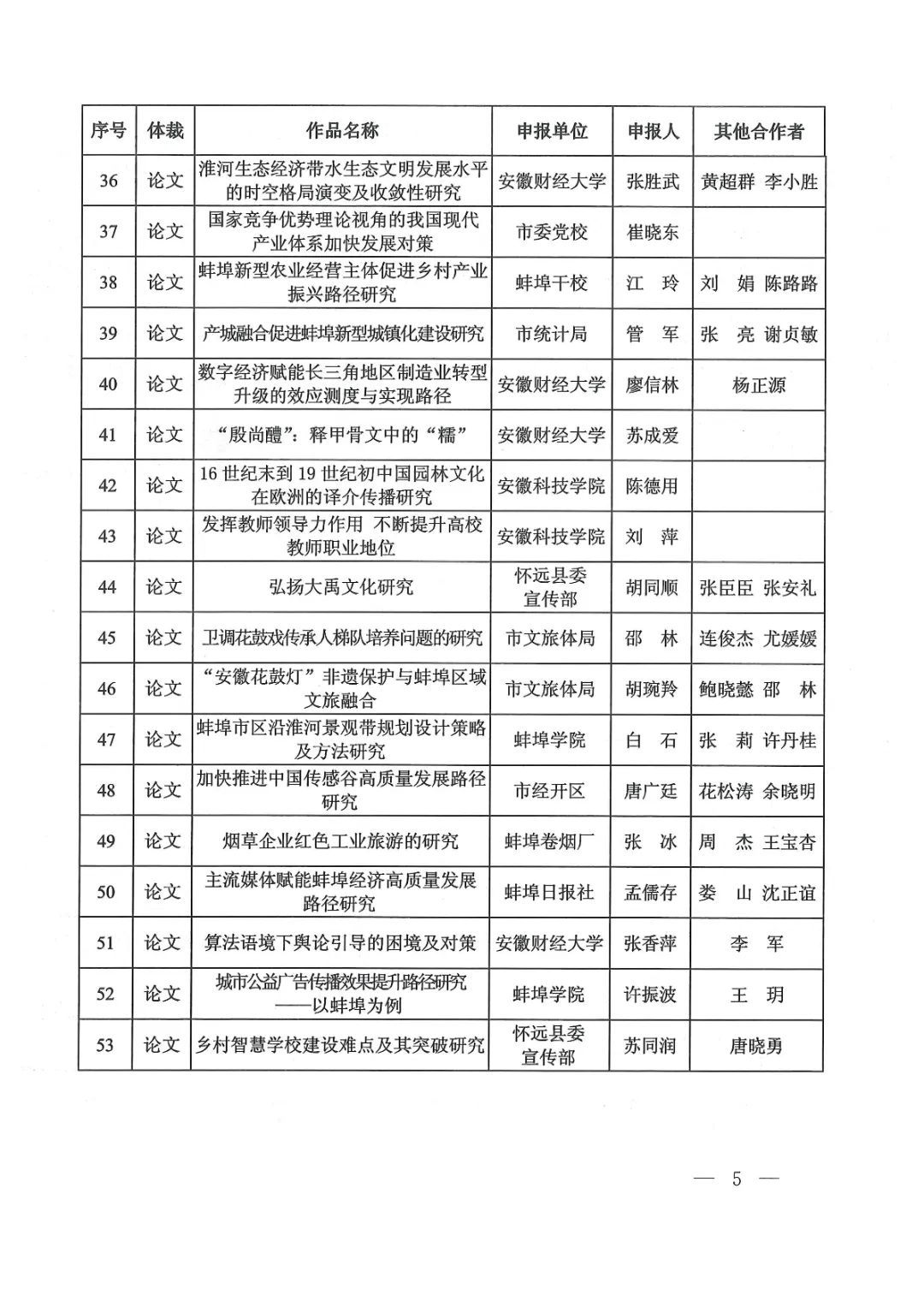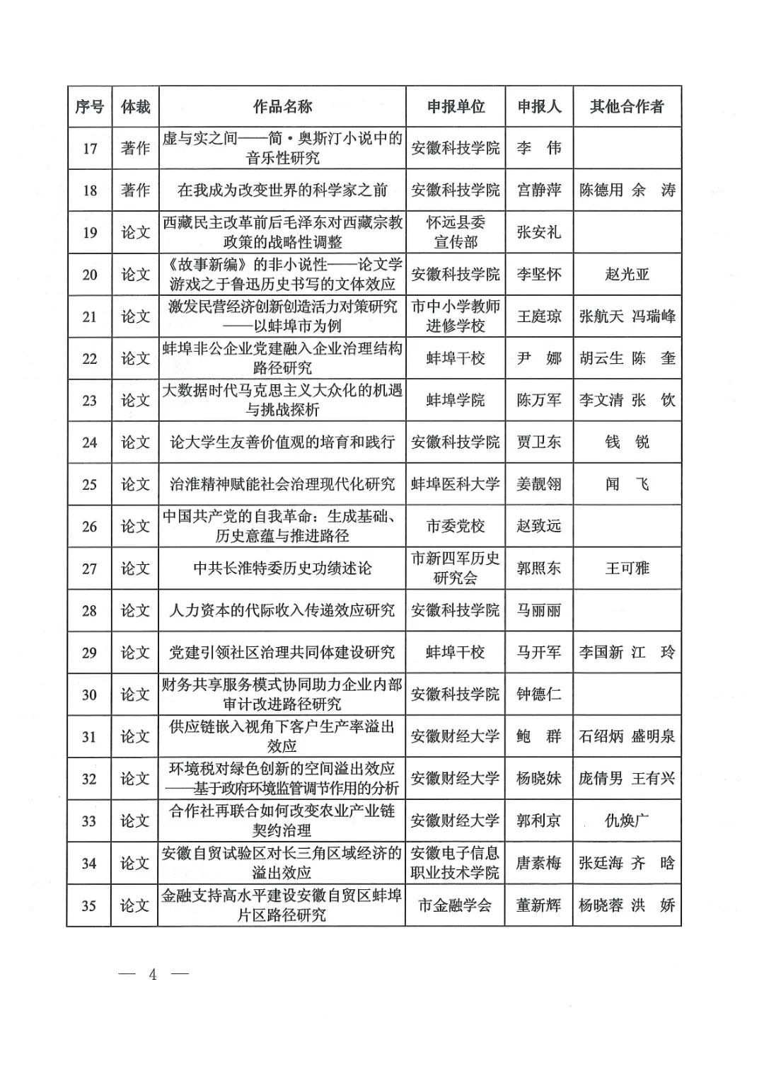 蚌埠发布客户端讯(融媒体记者 何沛)近日,蚌埠市第九次社会科学优秀成果奖揭晓,共评审出优秀成果100项,其中,一等奖20项,二等奖60项,三等奖20项;另53项成果获优秀作品奖,集中展现了蚌埠社会科学研究的优秀理论成果。