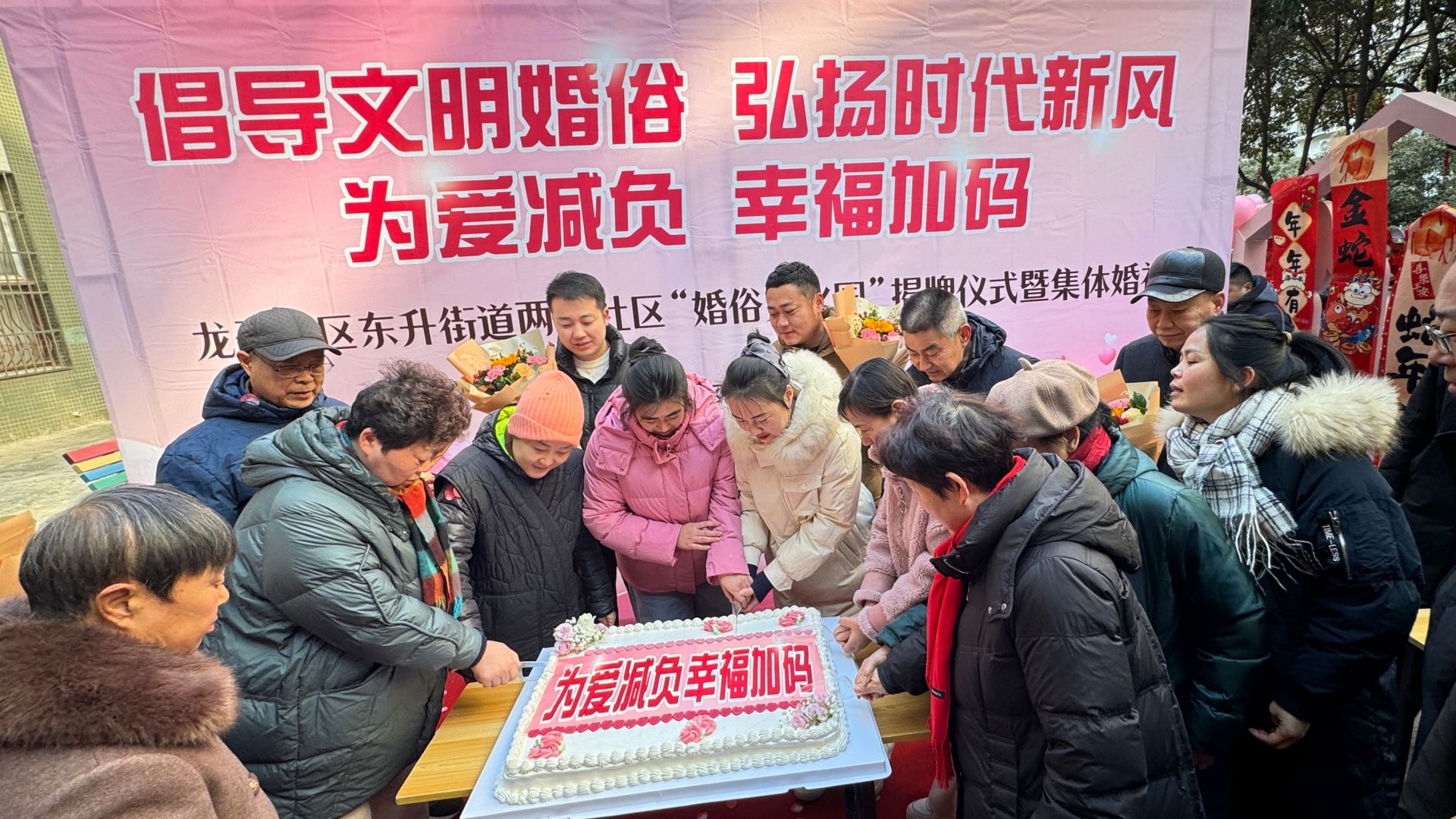 “此次活动由龙子湖区民政局主办,东升街道、两站社区承办。集体婚礼,是婚事新办简办、弘扬文明新风的表率。希望更多的年轻人用实际行动倡导正确的爱情观、婚姻观、家庭观,争做文明婚俗的倡导者、传播者、践行者。”东升街道党工委书记陈明表示,今后,我们将结合移风易俗等相关工作,积极开展婚姻家庭、婚俗婚恋文化宣传,让摒弃婚嫁陋俗成为更多人的共识与行动。