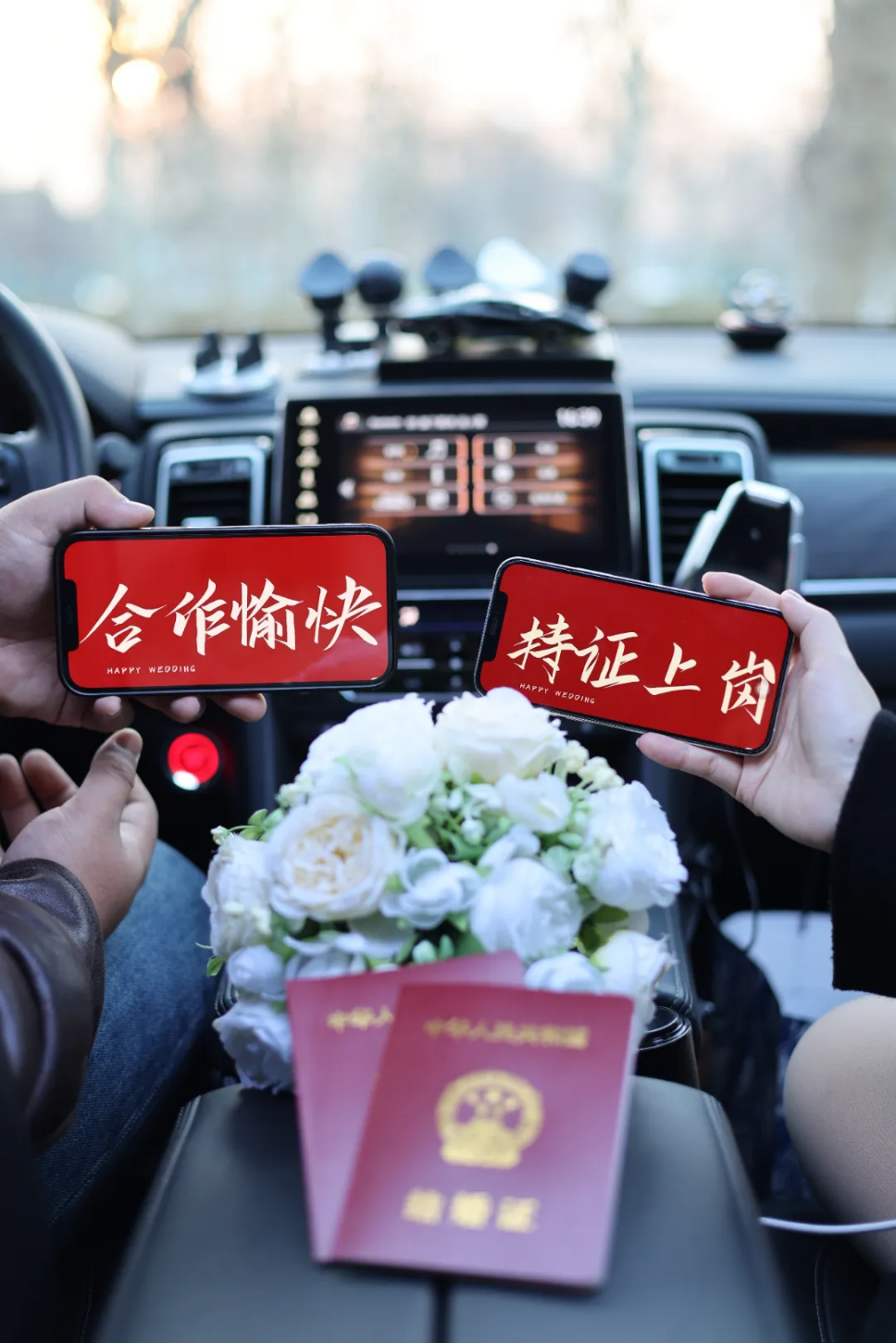 领完结婚证回家途中