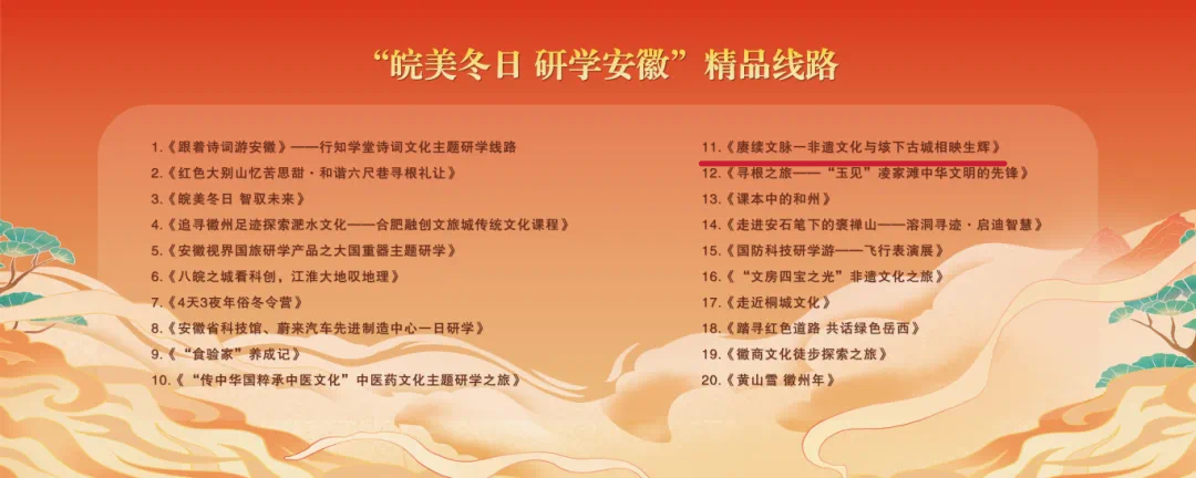 蚌埠发布客户端讯(融媒体记者 尤靖文)1月18日,由省文化和旅游厅主办的2025年“多彩研学安徽年”特色研学旅游季启动。启动仪式上,固镇县入选研学旅游基地品质提升试点县,固镇县谷阳城遗址公园和固镇县博物馆入选全省研学旅游基地品质提升试点单位,《赓续文脉一非遗文化与垓下古城相映生辉》入选“皖美冬日 研学安徽”精品线路。