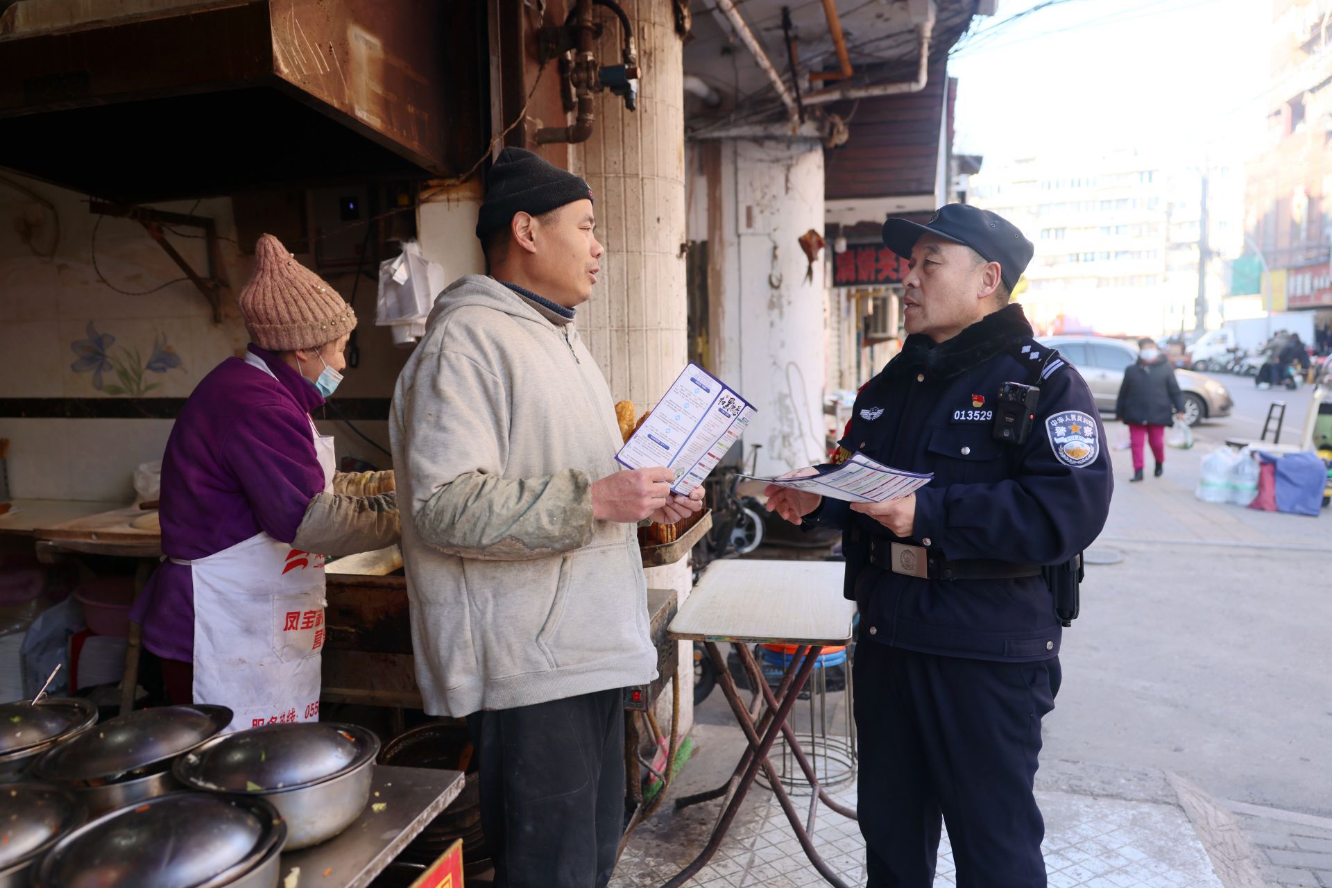 时间总是在忙碌中过得很快,李仁强抬手看看手表,已经是11点多了,叮嘱几户开门营业的商户后,便回到所里整理社区民警工作日志,“吃过午饭休息会,下午我们再去淮河路看看,那里又是新春庙会,又是商家促销,人肯定不少,”李仁强对辅警小宗交代,“这越是节日我们人民警察越要打起精神,把安全隐患消除在萌芽之中,最好一起警情也不发生,让老百姓过个‘平安年’。”