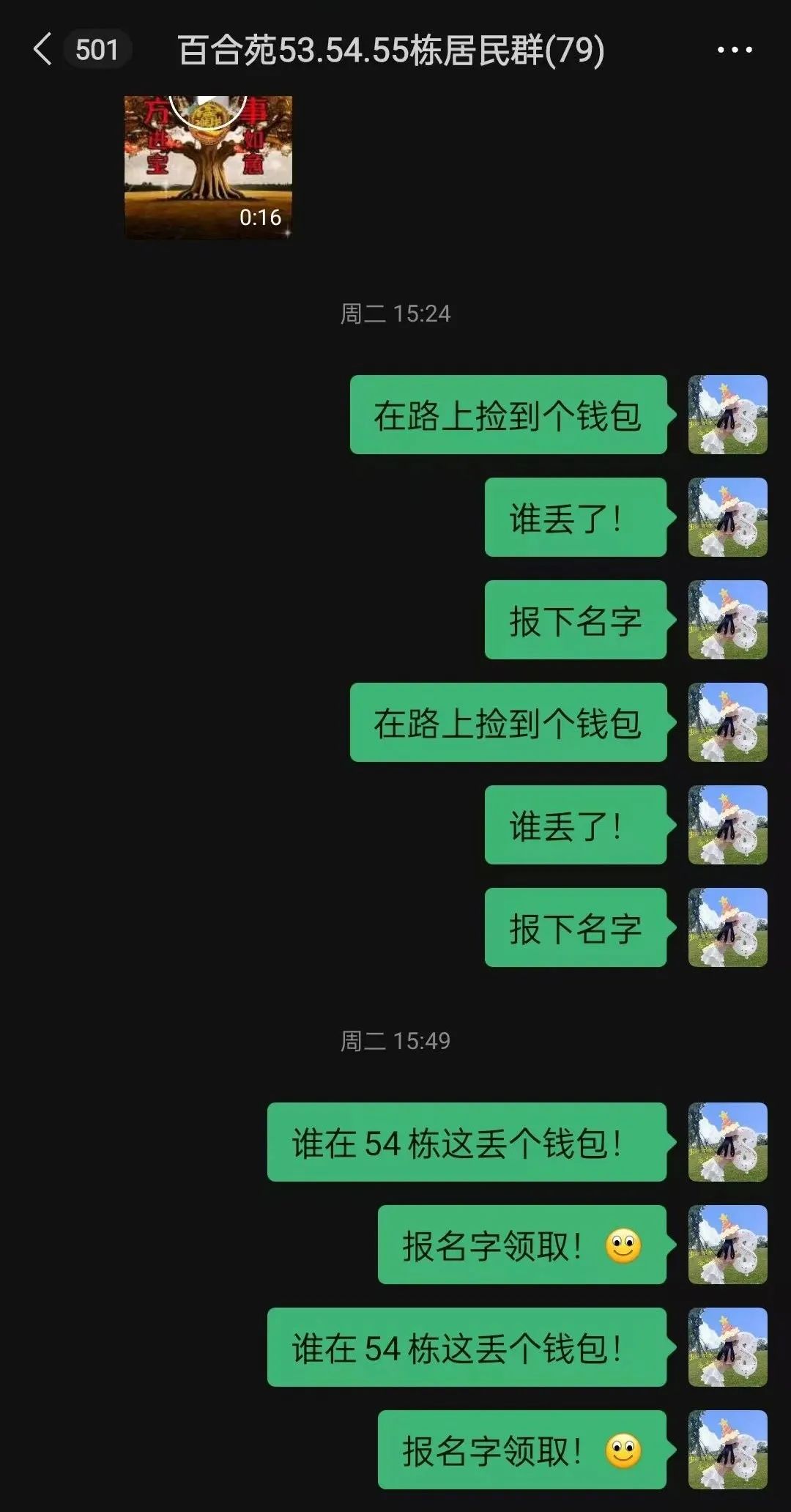等各种群发布失物信息