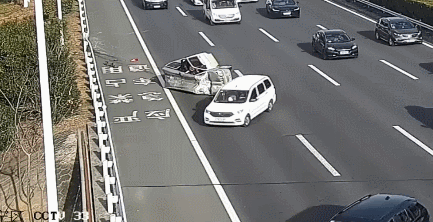 面包车爆胎并发生事故的瞬间(画面已加速处理)