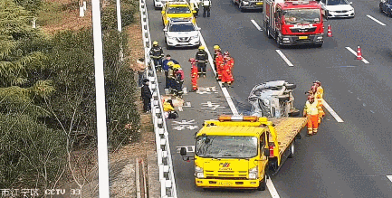 将面包车上的驾乘人员和宠物——6个人、2只小狗都从侧翻的面包车里拉了出来并护送到高速公路的护栏外事故发生4分多钟后受困人员均已移动到安全地带