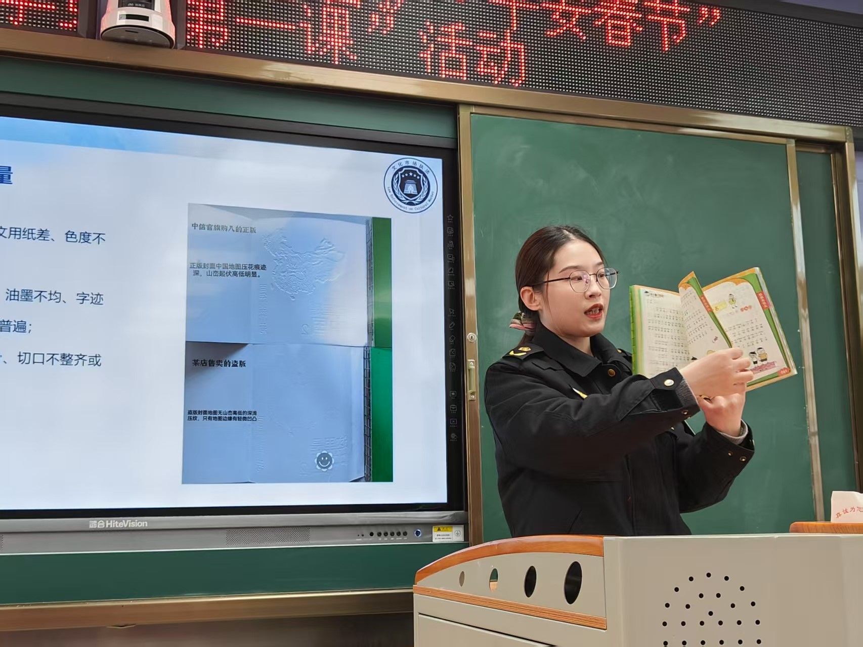 宣讲课上,市文化市场综合行政执法支队队员以“什么是出版物”为切入点,围绕“如何识别非法出版物和违禁出版物”“非法出版物对青少年的危害”“什么是‘绿书签’行动”这三个方面,用通俗易懂的方式向学生普及非法出版物相关知识。通过普法小课堂,让同学们学习到如何在日常生活中鉴别非法出版物,引导同学们自觉抵制不良文化的侵害,提高对非法出版物的辨别意识和抵制意识,树立知识产权保护意识。