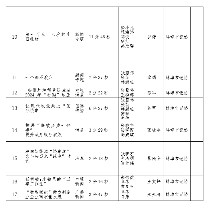 2025年3月4日,经蚌埠市参评新闻评审委员会全体评委研究决定,拟推荐《我在“家门口”建机场》等17篇作品参评安徽新闻奖(具体名单见附件)。