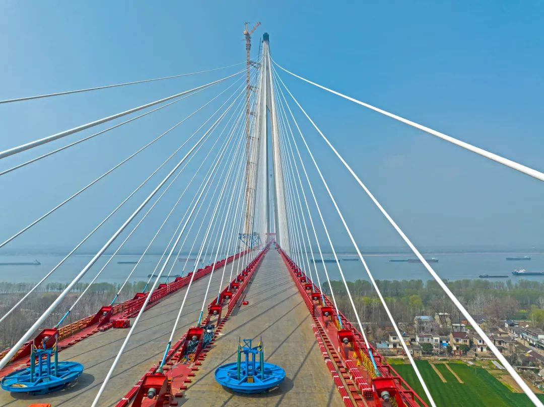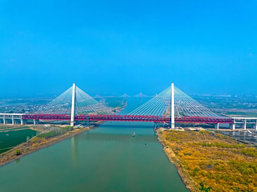 作为巢马城际铁路的控制性工程,马鞍山长江公铁大桥主桥采用主跨(2×1120米)三塔钢桁梁斜拉桥,总长3248米,为世界上首座双主跨超千米的三塔斜拉桥,同时也是世界上最长联钢桁梁斜拉桥。