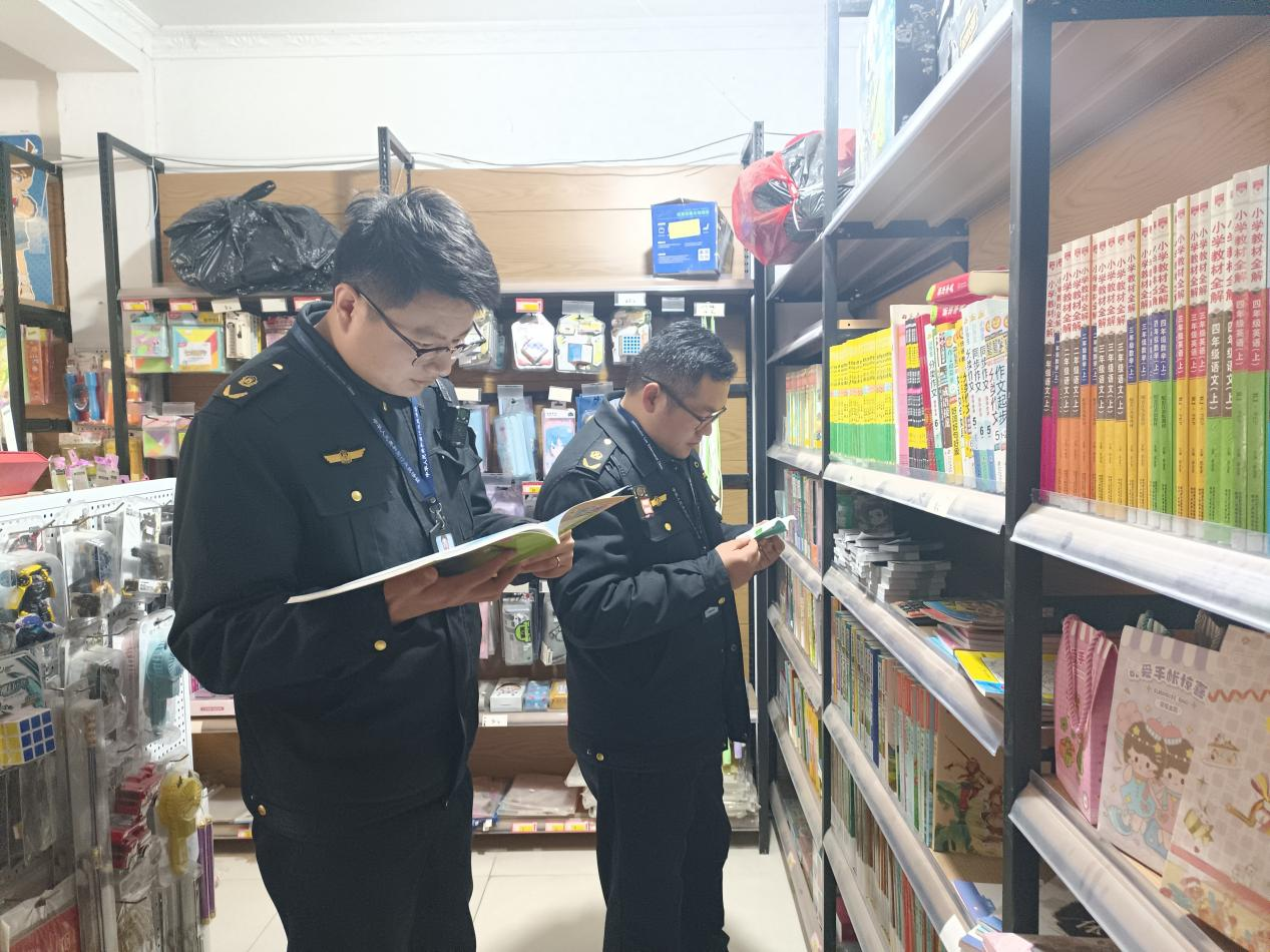 检查人员一行来到曹老集镇校园周边的出版物经营单位,重点检查其是否存在无证经营及销售非法出版物、违禁出版物、盗版教辅教材等行为。检查过程中,执法人员要求各经营业主要严格把好各类出版物进货质量关,自觉抵制非法出版物和有害信息,保存好相关进销货台账,切实做到合法经营、规范经营。