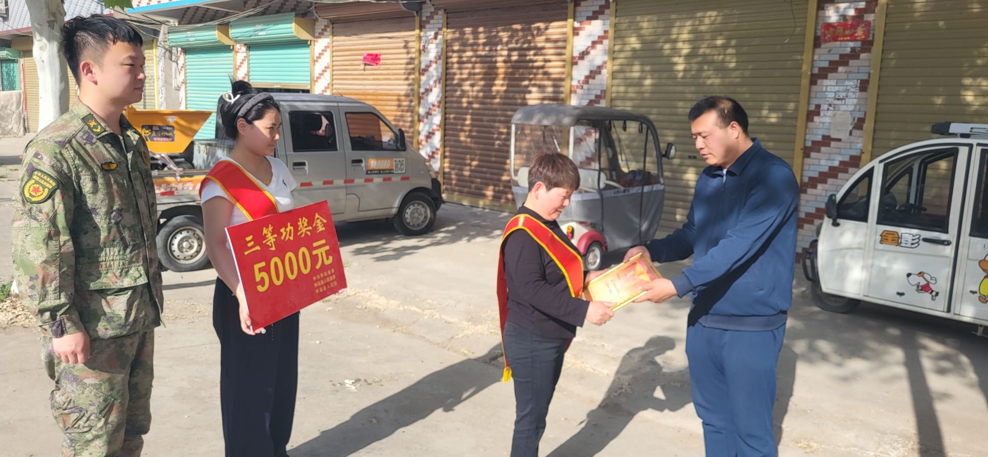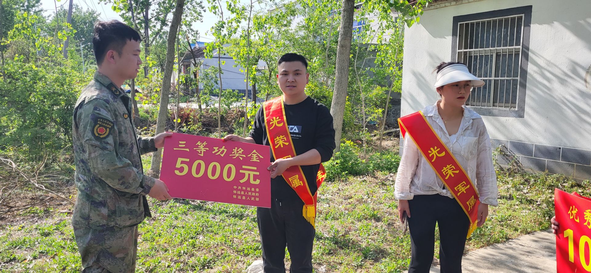 军营立新功,喜报传家乡。4月16日,怀远县万福镇人武部、退役军人服务站、村两委等干部组成报喜团,先后来到砖桥村、镇西村,为荣立三等功的2名同志家属分别送上立功喜报和奖励金。