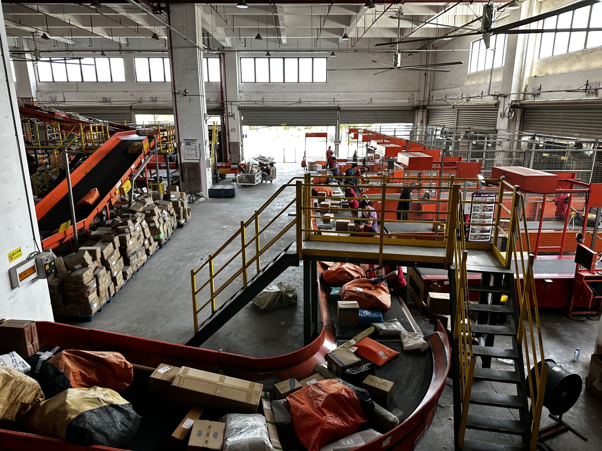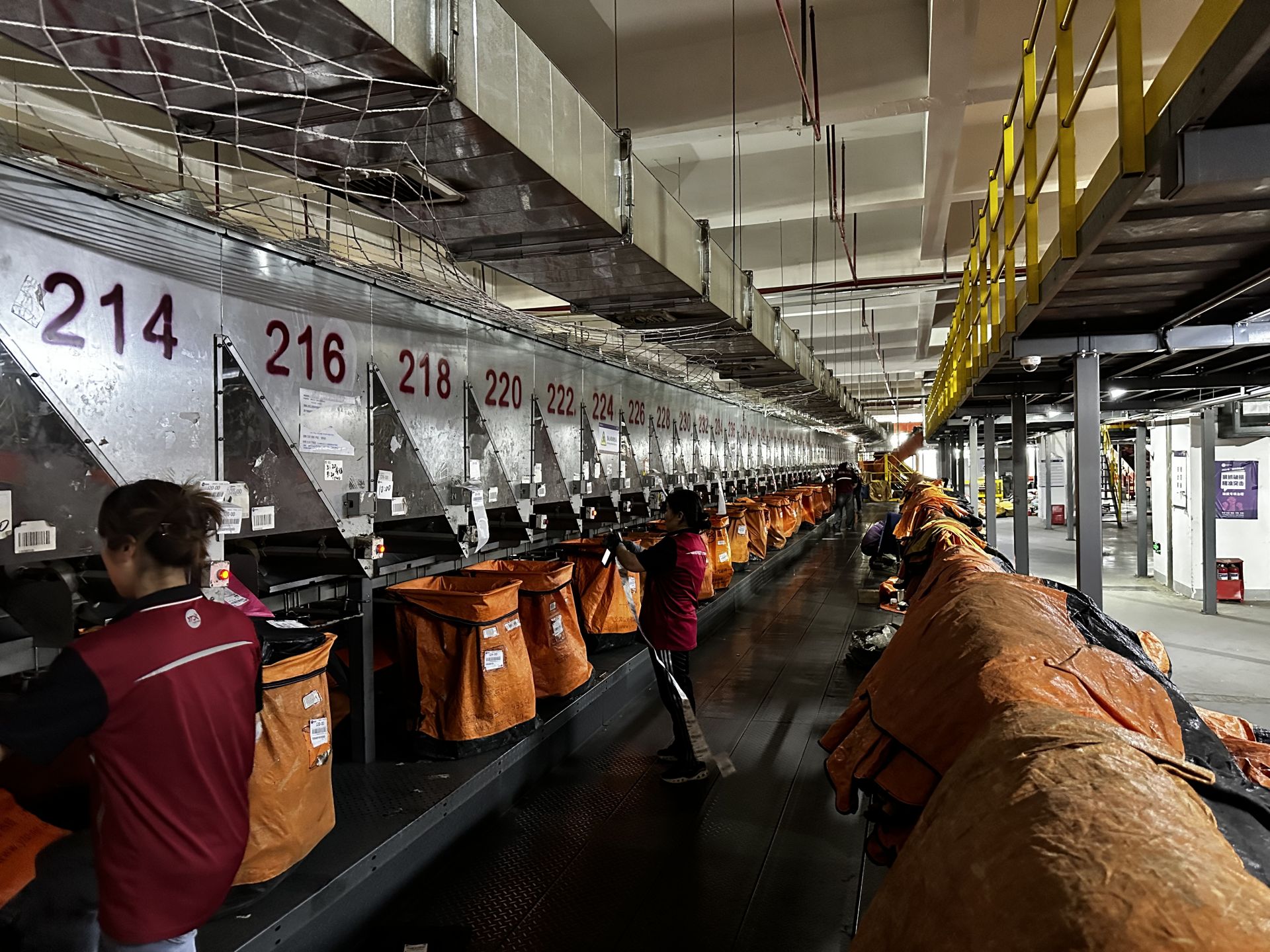 4月30日下午,记者来到蚌埠某快递公司的分拨中心,只见来自全国各地的货车络绎不绝,智能化分拣线上,橙色的快递包裹在传送带上快速移动,工作人员忙碌而有序地进行着分拣工作,他们的动作熟练而迅速,确保每一个包裹都能准确无误地被送到指定的区域。