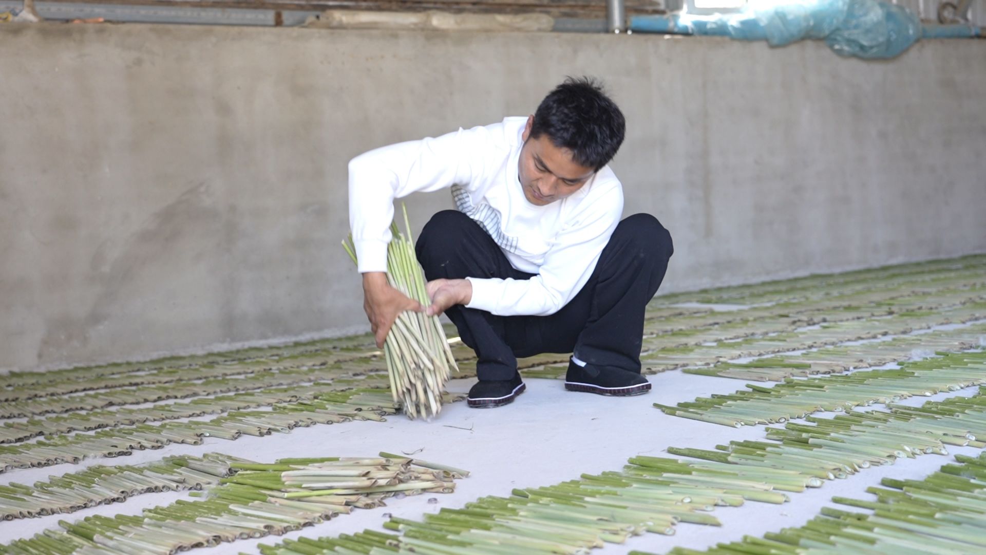 “你看,一抽、一吹、一扭、一捋,不到二十秒,一根笛膜条就做好了。这是俺们村的传统手艺,我都干了20多年了!”汤宇自豪地笑着说,指尖翻飞间,一根合格的笛膜便已成型。