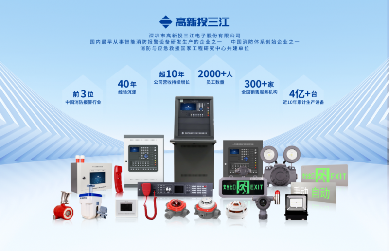同时,在应急疏散领域,高新投三江是行业内产品线最丰富的厂家之一,应急疏散系统主机壁挂、琴台、立柜等多种款式可选,拥有数百款照明及标志灯具等终端产品,包括工业防爆、高防护、大功率B型等特殊类型产品,满足公共、商业、工业、住宅等各类场所的选型需求,确保每一个角落的安全无忧。