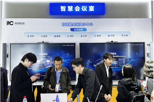 作为国内知名的音视频整体解决方案系统集成商,itc在此次展会上,重点展示了自主研发的分布式综合管理平台、融合通信系统、国产无纸化会议系统、远程视频会议系统及COB一体机等一系列行业领先的音视频系统产品,并围绕指挥、通信、会议、视听等核心场景,搭建运营指挥中心、智慧会议室等功能体验区及LED沉浸展示区,全方位展出itc便捷高效、智能精准、协同联动的音视频系统整体解决方案和创新融合的系统产品。