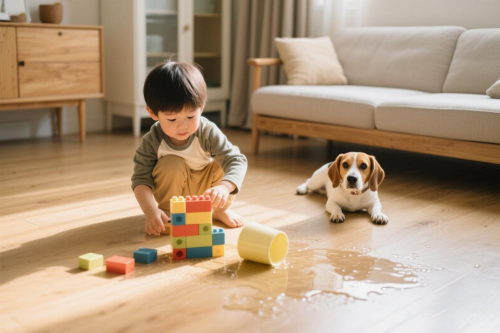 现代家庭中,地板不仅要应对水渍侵袭,还要经受各种“暴力考验”——宠物奔跑时锋利的爪子、孩子玩具的意外摔砸、家具挪动时的摩擦刮蹭……传统地板一旦遭遇冲击,轻则留下划痕,重则开裂变形,不仅影响美观,更缩短了使用寿命。频繁修补或更换地板不仅增加额外开支,更让追求品质生活的消费者倍感困扰。