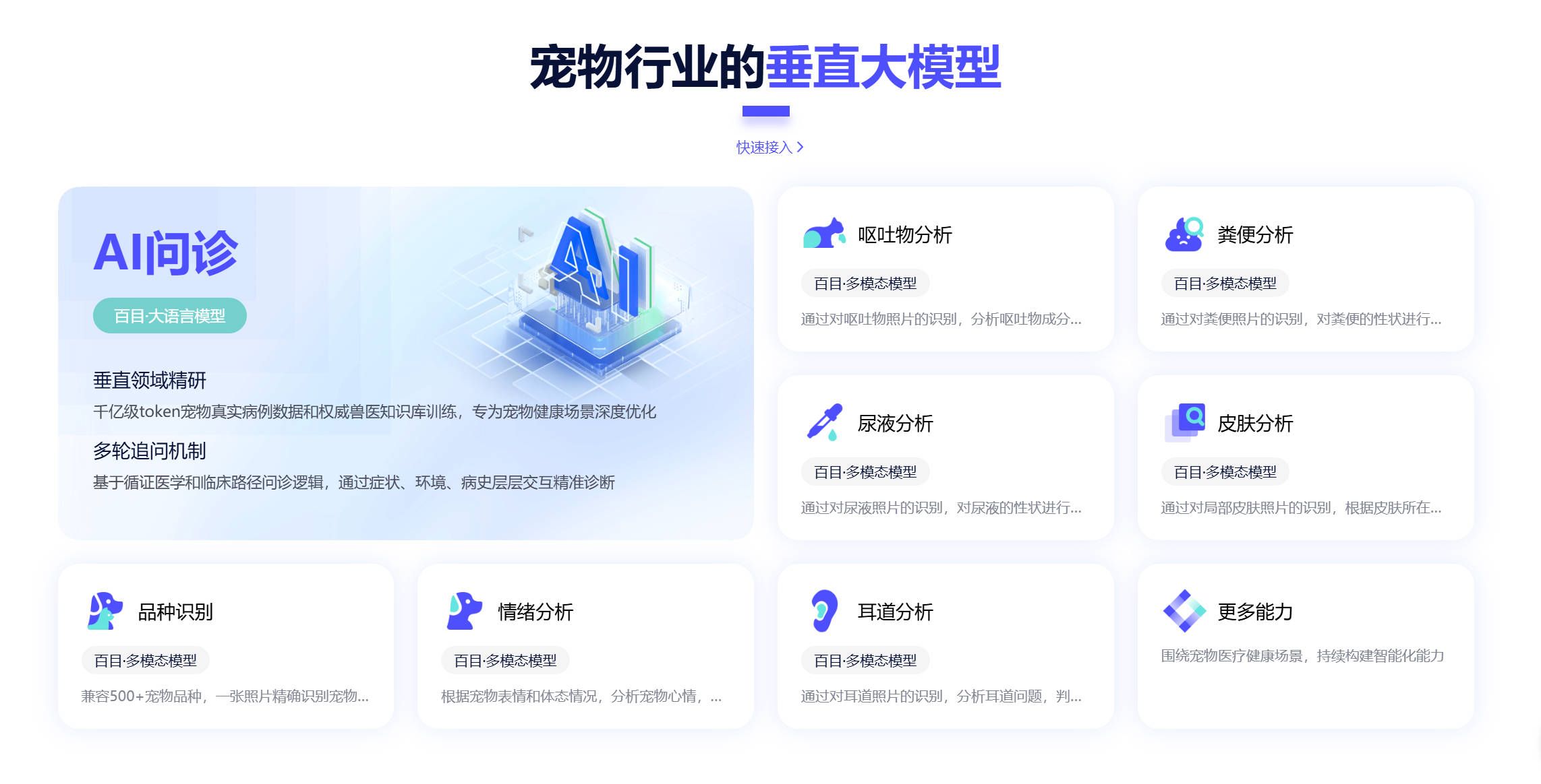 区别于通用型人工智能模型,汪喵灵灵自研的百目魔君AI大模型深度聚焦宠物健康需求,精研宠物独特的行为模式、生理指标及营养需求,以三大核心能力构建竞争壁垒: