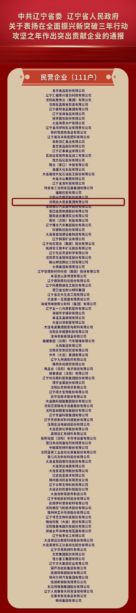 今天,我们怀着无比自豪的心情宣布:沈阳远大铝业集团作为111家受表彰的民营企业之一,荣登辽宁省委省政府通报表扬名单!这份沉甸甸的荣誉,是对我们坚守实业报国初心、勇担振兴使命的最高褒奖。