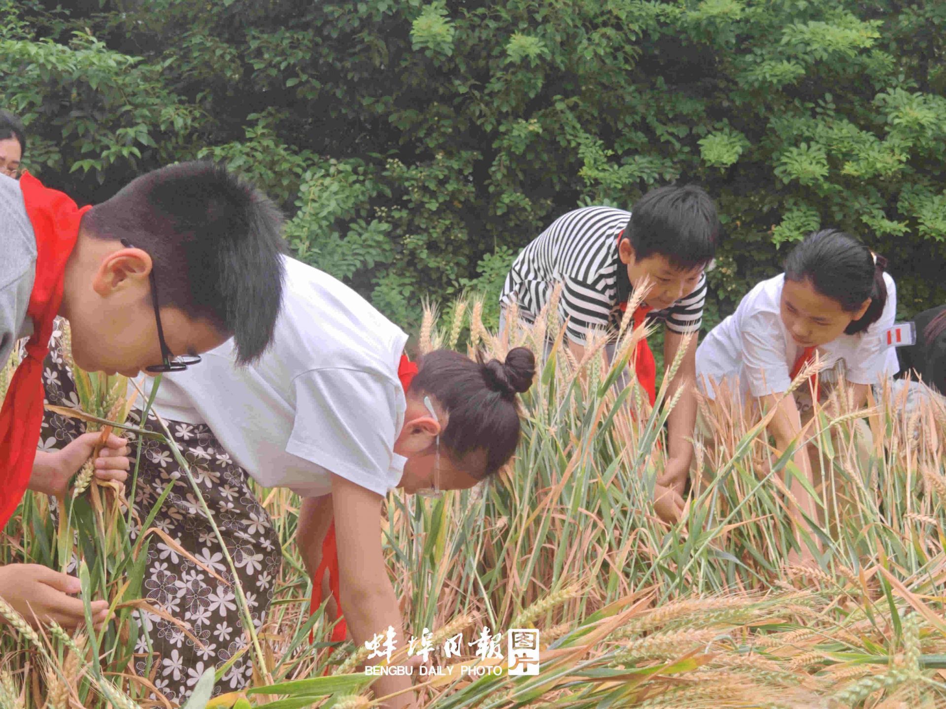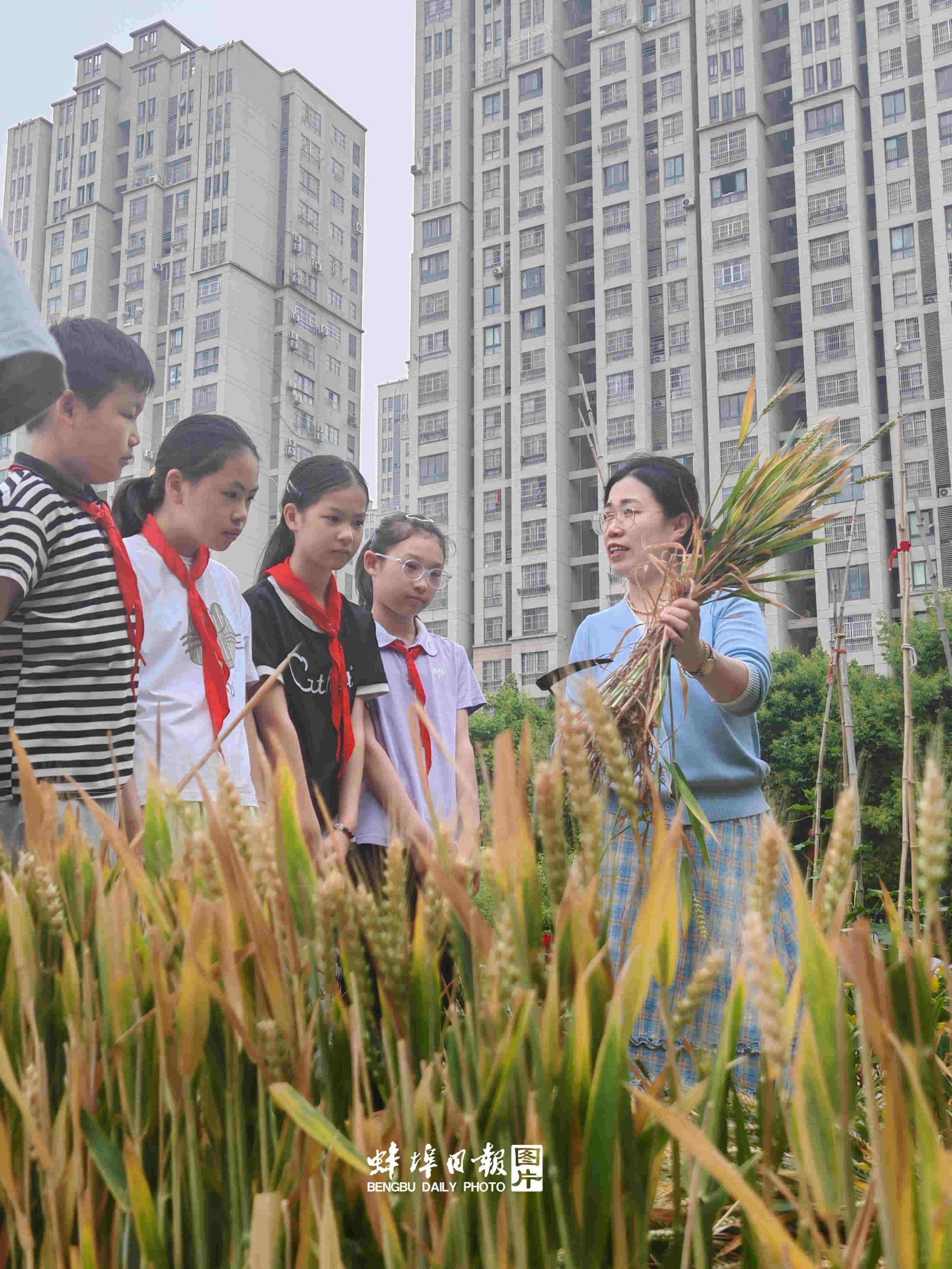 蚌埠发布客户端讯(融媒体记者 陈昂 通讯员 吴翠云 文图)近日,蚌埠市燕京学校东北角的劳动教育实践基地一片金黄,沉甸甸的麦穗随风摇曳。道德与法治社团的少先队员们在老师的带领下,走进麦田,上了一堂别开生面的 “麦田里的思政课”,在麦浪中体验劳动艰辛,感悟劳动精神。
