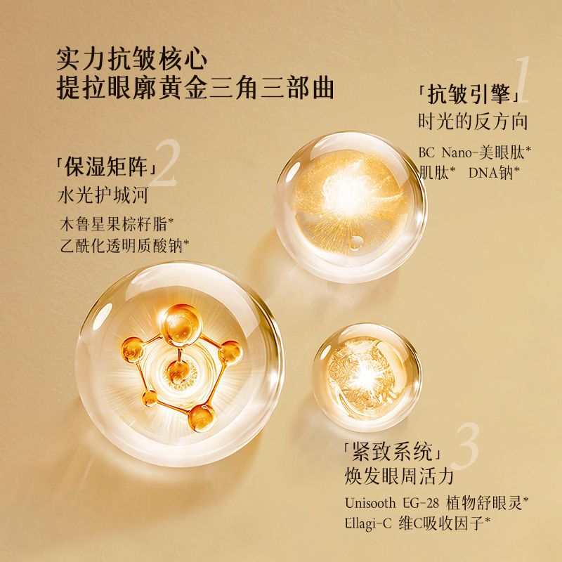 针对眼部常见的细纹和皱纹问题,这款眼霜拥有独特的抗皱配方。肌肽具有抗氧化和抗糖化的作用,能够抵御自由基对肌肤的伤害,减少胶原蛋白的流失,从而延缓肌肤衰老,减少皱纹的产生。多肽---BC Nano - 美眼肽则可以深入肌肤底层,刺激胶原蛋白的生成,增强肌肤的弹性,对于已经形成的细纹和皱纹有明显的淡化效果。长期使用,能够让眼周肌肤恢复光滑细腻,重焕年轻光彩。