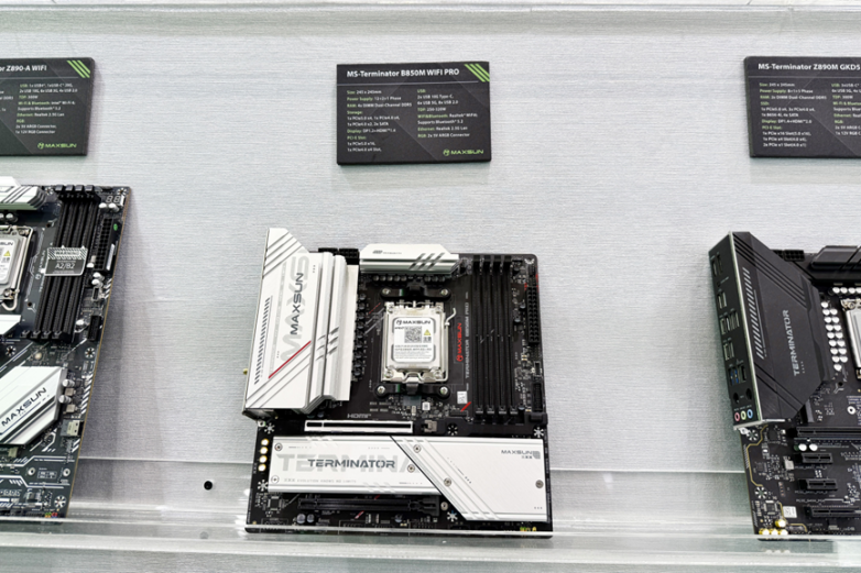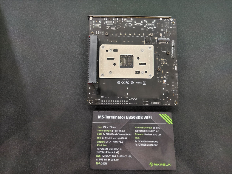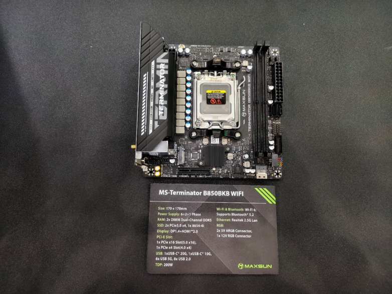 在持续引领主板创新的路程上,铭瑄永不止步。过往铭瑄曾推出采用开创性YTX布局的MS-Terminator H770YTX D5 WIFI和背靠背板型的MS-Terminator B760BKB D5,均凭借前沿特别的设计广受好评。在今年的COMPUTEX 展会上,铭瑄再度带来一款全新“BKB”形态主板——MS-Terminator B850BKB WIFI,171x171mm的主板尺寸,采用6+2+1相,核心110A SPS服务器级数字供电设计,最高支持200W+供电能力,稳定释放处理器性能。作为“BKB”形态主板新品,MS-Terminator B850BKB WIFI同样具备背面PCIe显卡插槽,无需延长线,显卡背面直插,大幅降低延迟,同时正面提供一条PCIEx4插槽,同ITX板型拓展更强!另外该主板还搭载了2.5G高速网络接口,前后置双Type-C接口、前后置2个M.2满速接口、1个SSF-8654-4i板载插槽,为用户提供了丰富的拓展选择。从隐形走线的美学理念到硬核性能的全面升级,MS-Terminator B850BKB WIFI不仅延续了BKB系列显卡背插的设计哲学,更通过性能优化,使小型主机兼具硬核性能与视觉美学,成为使用ITX机箱用户的理想选择。