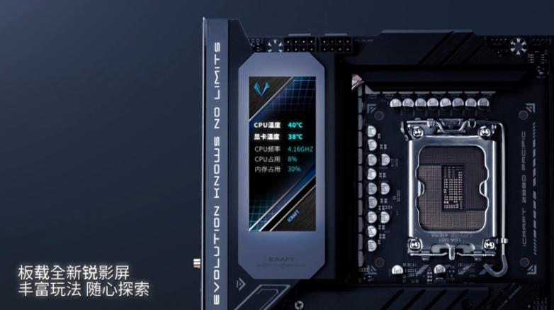 铭瑄Z890系列主板精美强悍,具备多种板型设计,能够满足不同用户在多种场景下的需求。无论是追求性能的狂热玩家,或是外观至上的颜值玩家,都能大大升级DIY体验。其中iCraft系列主板更是创新配备一块3.4英寸锐影LED显示屏,支持多种模式设置,除了可实时显示系统信息、个性化开关机画面外,还可开启桌面映射,同步显示专属画面或影像。用户可通过锐影屏配套软件MAXSUN View探索屏幕更多个性化玩法。