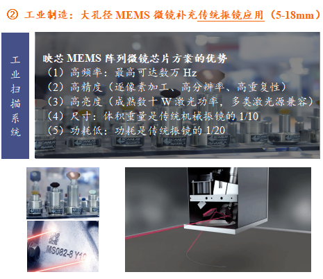 2025年5月,大孔径MEMS微镜阵列芯片和领先的光学投显解决方案提供商inSync(映芯谐振)发布了新款MEMS微镜阵列芯片,主要为智能车灯、动态照地灯、高亮投影显示、3D打印、激光镭雕等领域客户提供高功率、高扫描频率、高精度的MEMS扫描器件和解决方案,同时得益于其高集成度一体化的源创设计,不仅能够帮助客户在性能侧升级,在光机体积和成本侧相较于原方案又可以大幅度降低,从而更加提升客户产品市场竞争力。