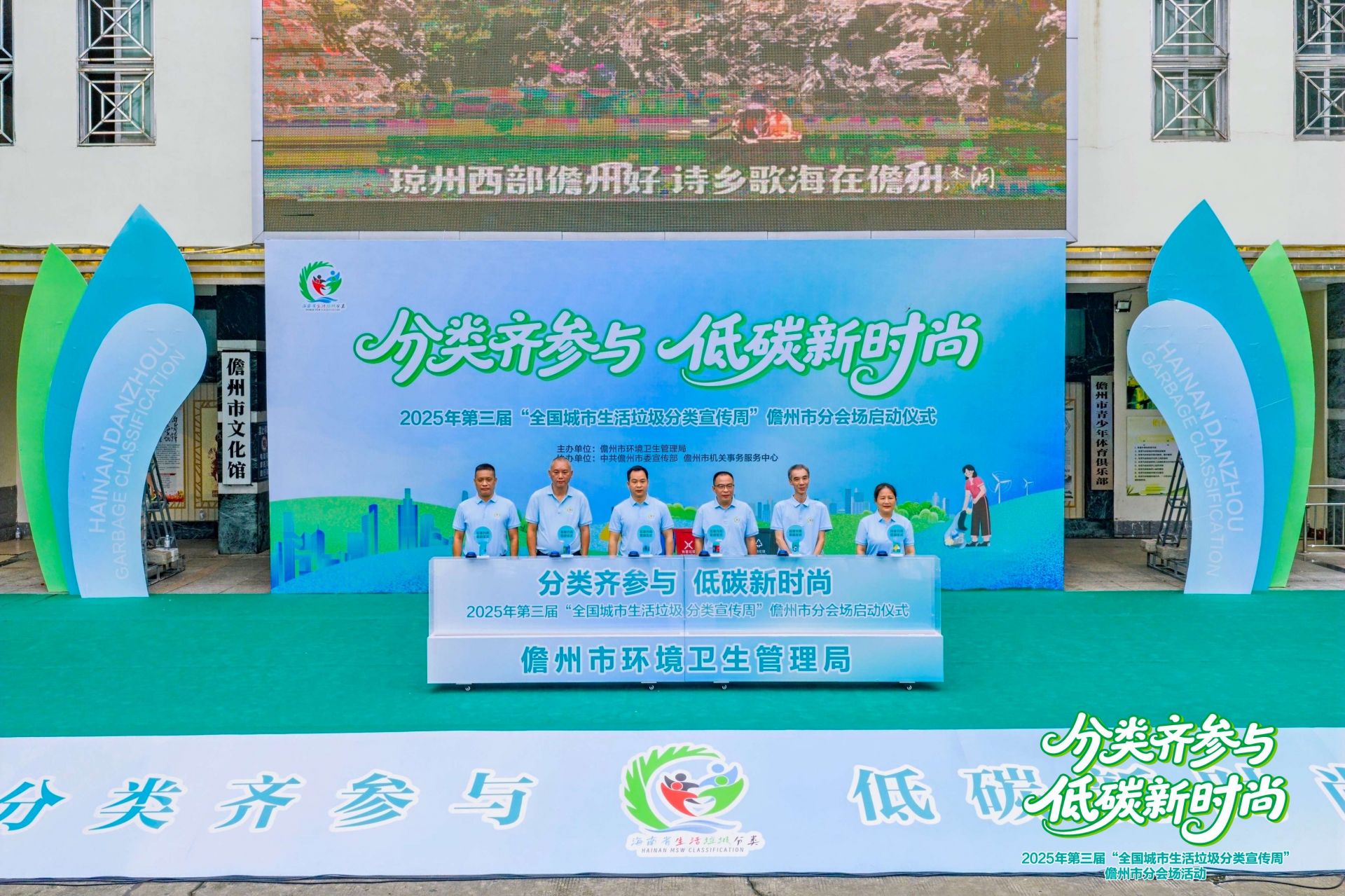 在领导们的共同见证下,垃圾分类启动台被正式开启,标志着儋州市垃圾分类工作迈入了一个新的阶段。紧接着,局长为志愿者服务队授旗,志愿者们将肩负起作为垃圾分类的宣传者和实践者重任,为推动垃圾分类工作贡献力量。