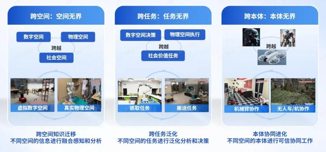 打破空间、任务、本体的固有边界,悠然无界大模型实现数字、物理、社会空间的无缝联通,支持多模态泛化、决策、控制,以及跨本体协同与共享,成为构建空间智能的核心基础。