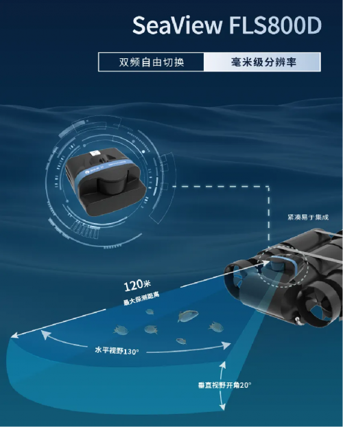 由海底鹰深海科技自主研发并生产的FLS800D前视目标搜探声呐,专为水下有缆机器人(ROV)和无缆自主航行器(AUV)开发,作为宽带实时成像前视声呐,无论清澈或是浑浊水域,均可快速探测目标并识别,满足各类水下探测、避碰及施工作业需求。凭借着多项对标且优于国外同类型产品的参数,成为平替的优质选择。