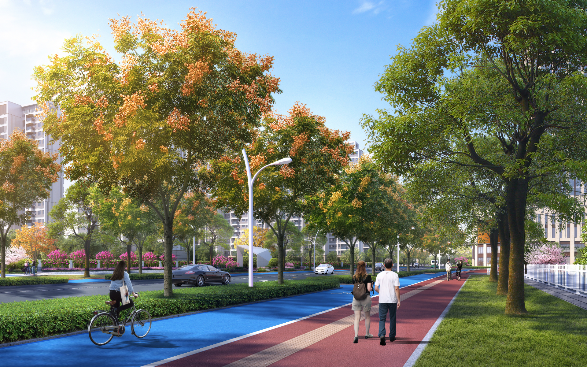 蚌埠市城区道路提升改造(二期)EPC项目工程管理部李德生介绍,经过紧锣密鼓的施工,目前宏业路南段(曹凌路—东海大道)原有人行道拆除已经完成,人非共板混凝土基础、侧石安装等工作已经完成,目前开始对该段人非共板进行沥青摊铺。其中人非共板区域人行道与非机动车道之间无高差、共板使用,通过喷涂不同色彩,清晰区分非机动车道和人行通道,达到各自使用功能。