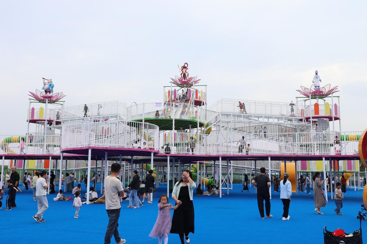 “穿越乾坤圈 ”障碍赛道锻炼儿童平衡能力、“ 亲子戏 龙舟 ”项目将哪吒元素与端午龙舟文化巧妙融合、“风火轮 ”更是让孩子们在其中肆意奔跑……乐园囊括了三十余个娱乐项目,乐园设计打破了传统节庆的静态模式,通过动态游戏让孩子在奔跑、协作中体验民俗的活力,这种沉浸式体验让哪吒精神变得可触可感。