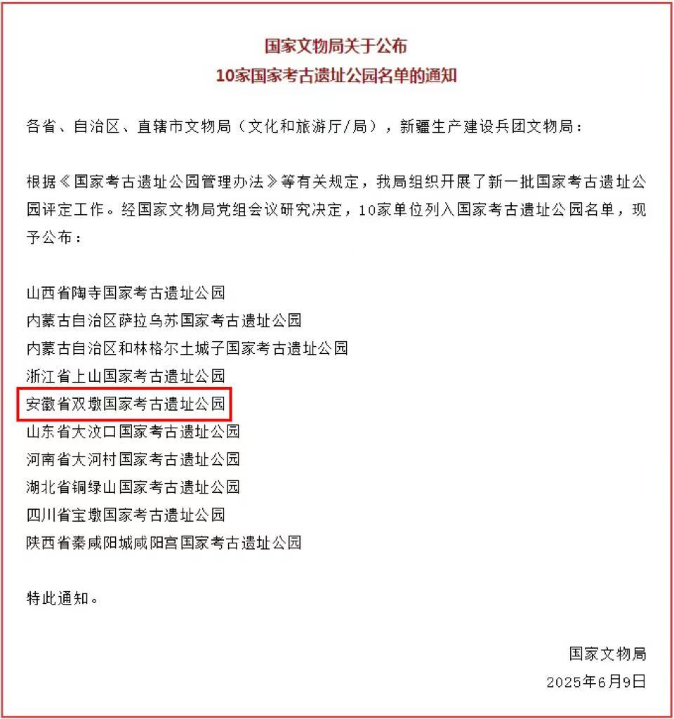 10家国家考古遗址公园名单的通知