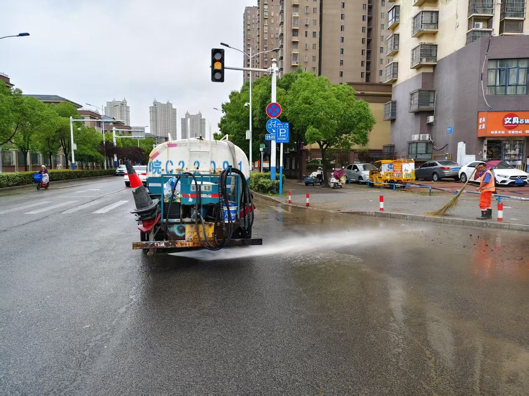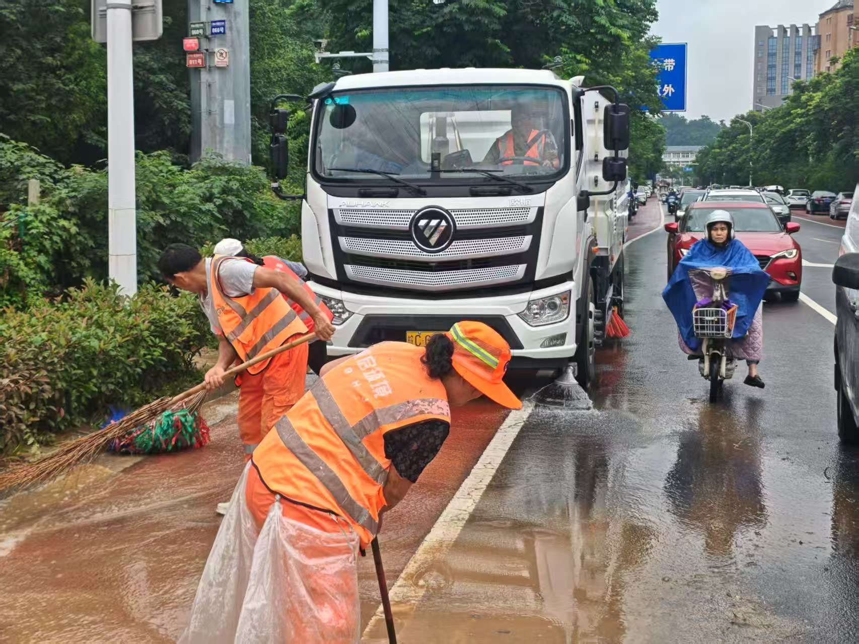 与此同时,环卫部门正在开展清淤和环境整治工作,采取“机械冲洗+人工保洁”作业模式,针对污染较为严重的路段,调集作业人员和车辆,开展高强度冲洗作业,并配合人工力量清除路面淤泥,力争最短时间内恢复道路本色。截至上午11时,全市共出动环卫人员2300余人,车辆设备52辆。