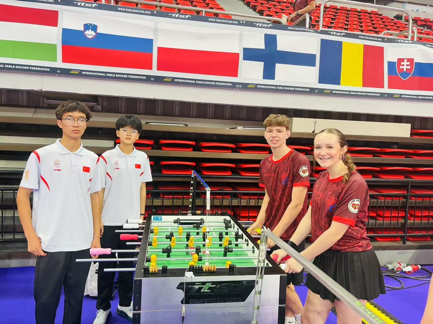 中国桌式足球国家队派出22名队员,角逐U13、U16、U19及成人组赛事。团体赛中,青少年组凭默契与技术获第6名,展现新生力量;成人组面对强手取得第28名。