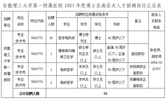 安徽理工大学第一附属医院2025年度博士及高层次人才招聘公告