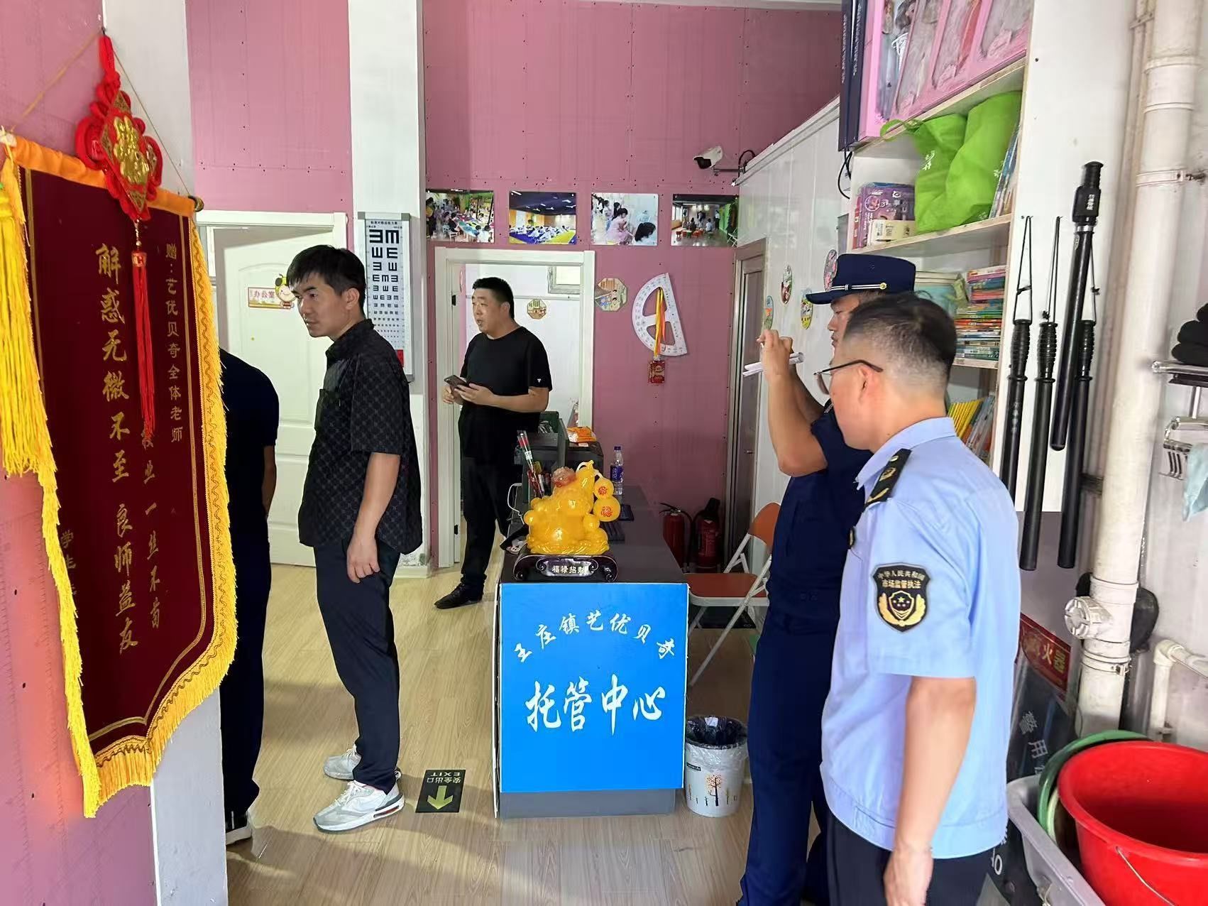 延伸监管触角,严查校外培训“风险点”。为进一步规范校外培训机构出版物市场,切实规范校外培训机构的经营和培训行为,王庄镇组织镇中心校、应急办、消防大队、市场所组成联合检查组,在开展校外培训机构和托管机构安全检查时,同步嵌入“扫黄打非”检查及“双减”政策落实情况督查。检查组深入11家培训机构,对培训机构内消防设施、培训内容等进行查验。同时,仔细核对各类出版物的进货渠道,确保出版物来源合法、内容健康。此举延伸了监管触角,堵塞了潜在漏洞,不仅保障了青少年暑期校外学习环境的安全纯净,更有效推动了“双减”政策落地,助力青少年健康成长。