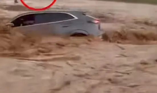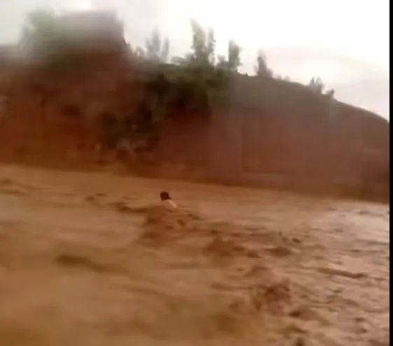原来,山西高平市米山镇东墡村208国道改线路段地势低洼一场突如其来的暴雨致使积水严重瞬间形成激流