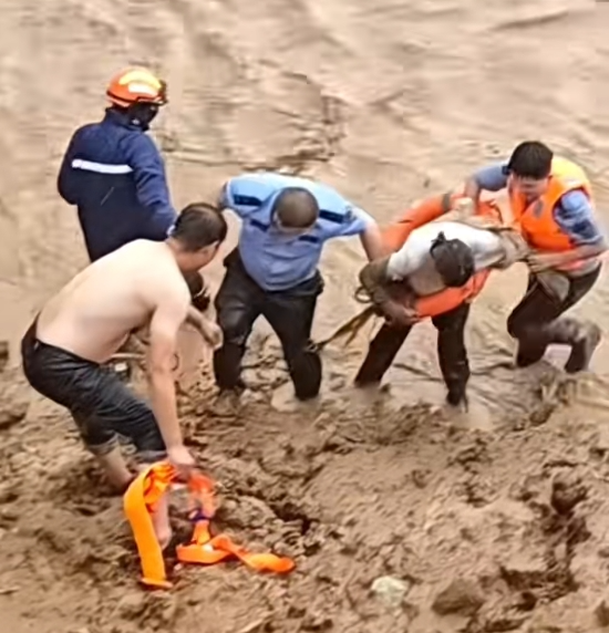 在他们的不懈努力下终于将被困者从淤泥内拉出并带至安全区域随后将其送上急救车经检查,该女子已无大碍