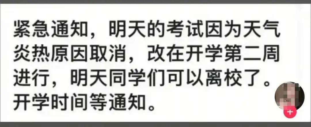 据媒体报道,该校招生办工作人员介绍,学校期末考试已经开始几天了,有的期末考试还剩两三天结束,目前因高温暂停期末考试,下学期开学后再接着考。