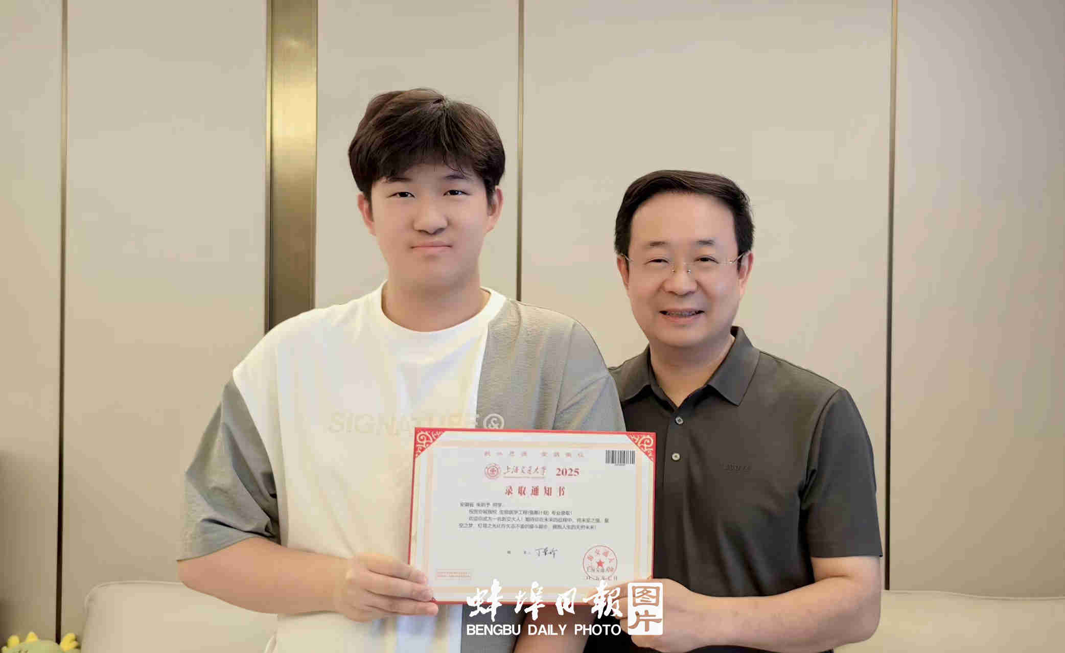 蚌埠发布客户端讯(融媒体记者 周芳林)7月12日下午,蚌埠学子朱则予在家门口接过期盼已久的上海交通大学录取通知书,“非常开心,想和爷爷奶奶分享”,喜悦之情溢于言表。