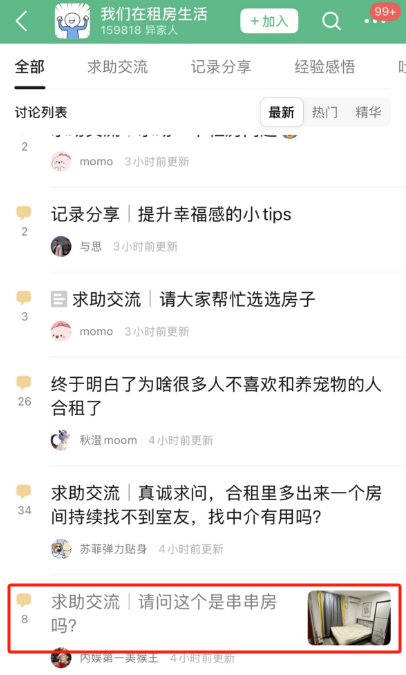 在某社交平台“我们在租房生活”小组中,许多组员晒出自己遭遇“串串房”的经历,更多人上传可疑房源照片,寻求网友帮助“鉴房”,试图避开这些装修陷阱。