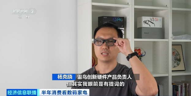 雷鸟创新硬件产品负责人 杨克晓:我现在在接受采访,但其实我眼前是有题词的。我们经历了AI眼镜从小众极客玩具,向大众消费产品的转变。上半年,首购用户达到了81%,用户月活同比增长了314%,用户的使用时长也增长了171%。