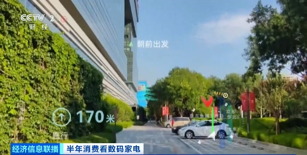总台央视记者 陈昊冰:增强现实的眼镜,从外观上看,跟普通眼镜区别不大。我戴上它,真实的世界当中已经叠加了虚拟的画面,开启导航,不仅能够看到眼前的世界,还能看到导航的线路。
